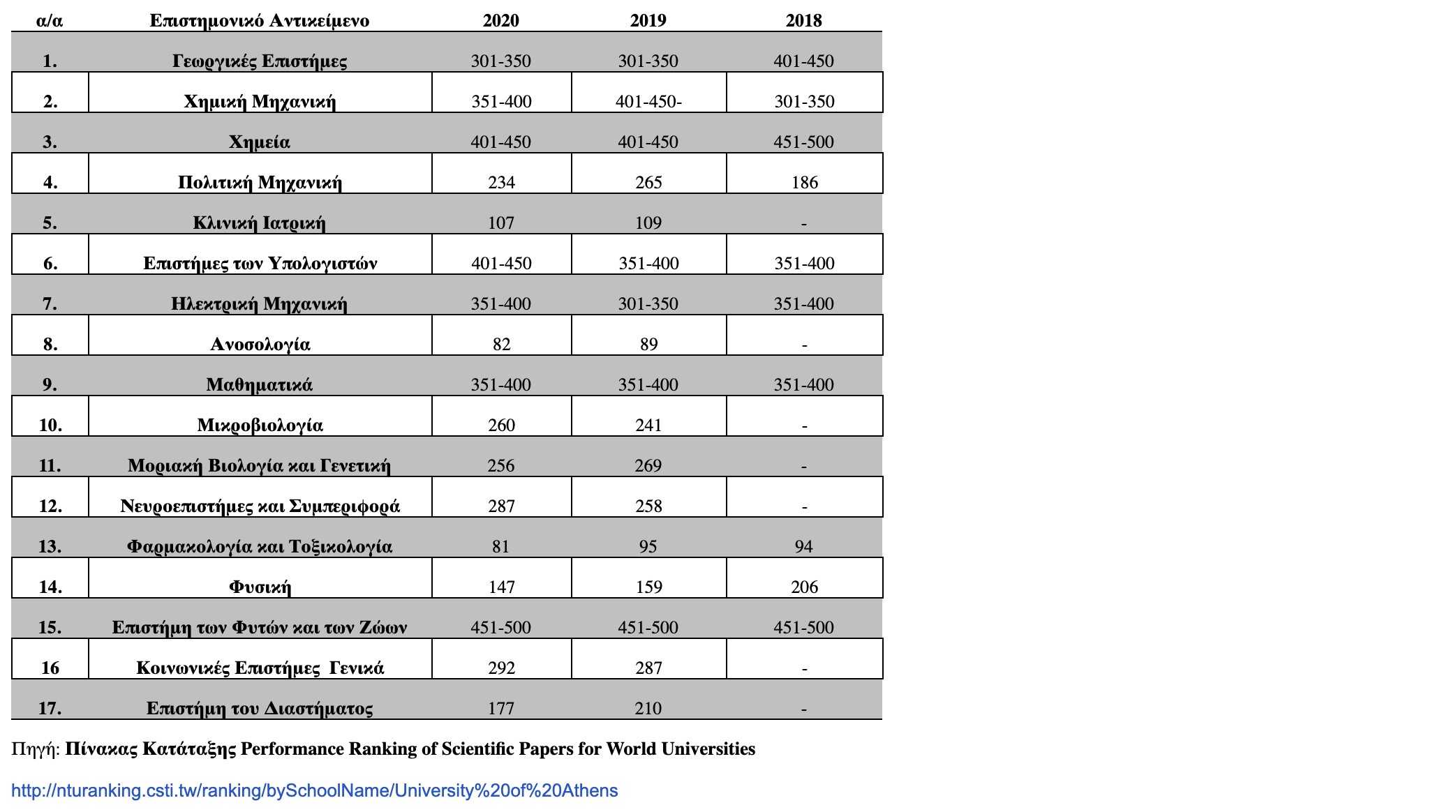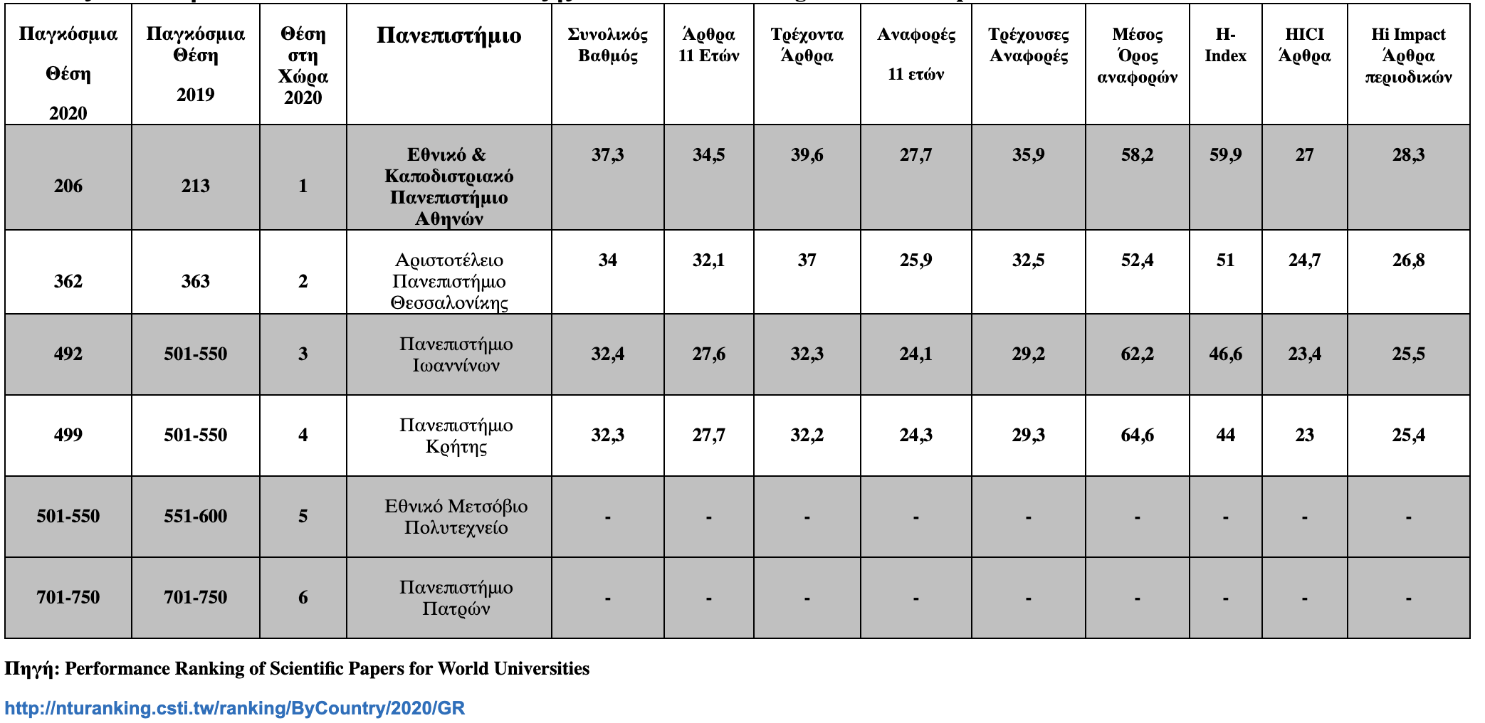 Πηγή: Πίνακας Κατάταξης Performance Ranking of Scientific Papers for World Universities