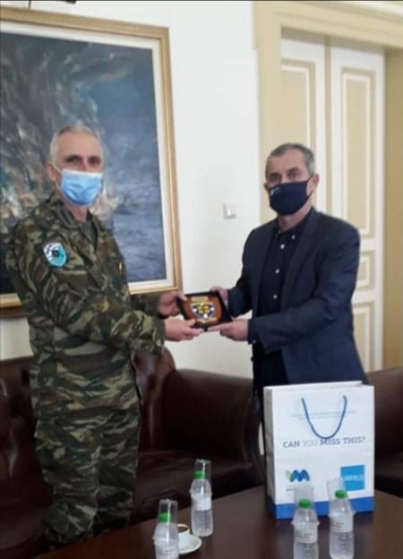 Τον Διοικητή του Γ΄ Σώματος Στρατού Aντιστράτηγο κ. Αναστάσιο Σπανό υποδέχθηκε σήμερα, Μ.Δευτέρα 26 Απριλίου 2021, στο γραφείο του, στο Διοικητήριο, ο Αντιπεριφερειάρχης Σερρών Παναγιώτης Σπυρόπουλος, παρουσία του Διοικητή του 10ου Συντάγματος Πεζικού, Συνταγματάρχη κ. Χρήστου Σγουρομάλλη.