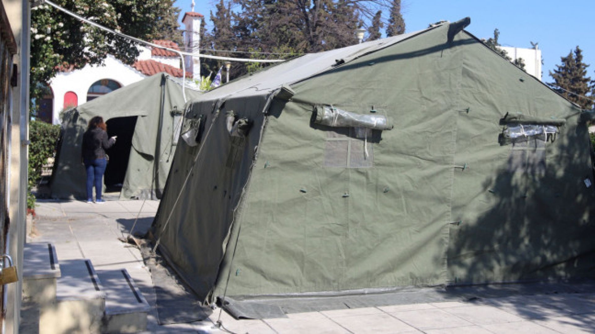 Στρατιωτικές σκηνές στήθηκαν στον προαύλιο χώρο του νοσοκομείου «Άγιος Παύλος» στη Θεσσαλονίκη, προκειμένου σε αυτές να διαμένουν ασθενείς με ελαφρά συμπτώματα.