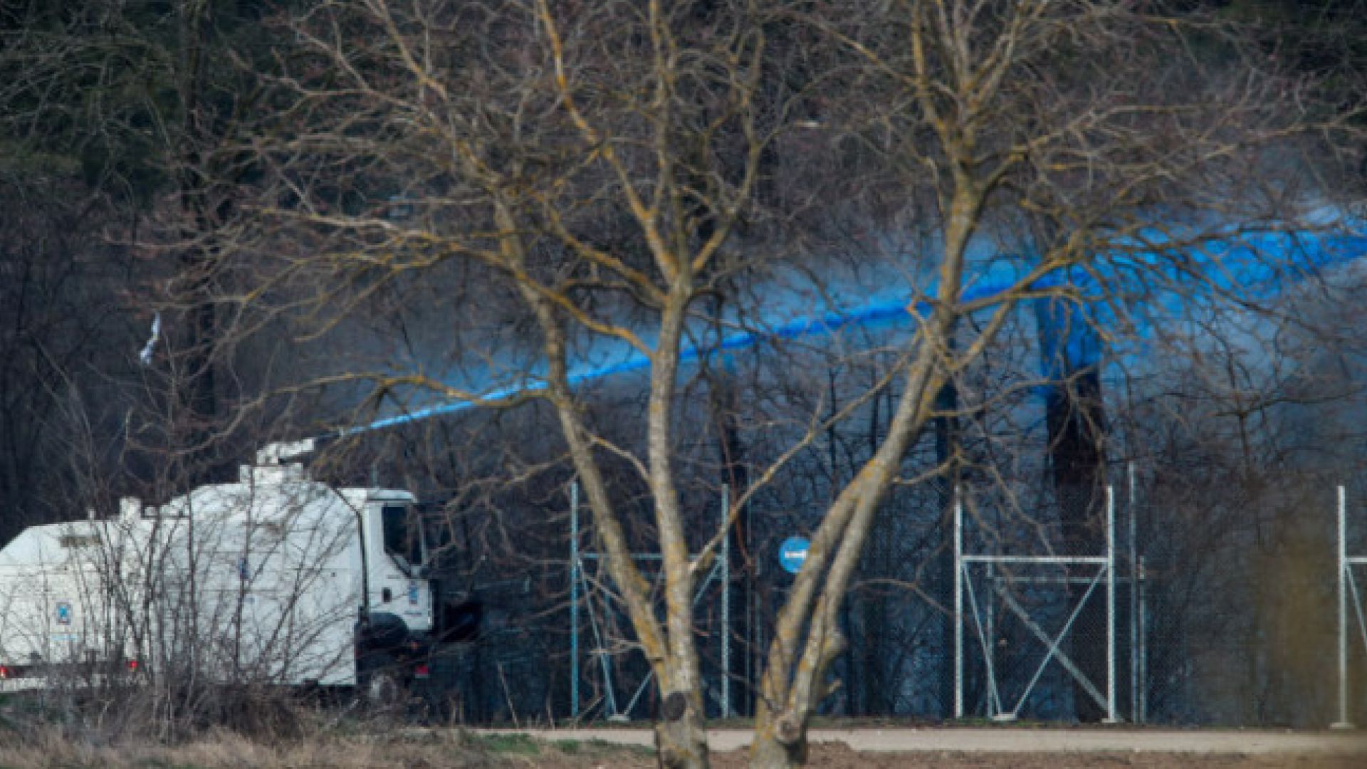 Μπλε μπογιά εκτοξεύει η αύρα ο «Αίας» της Ελληνικής Αστυνομίας στους μετανάστες στον Εβρο που επιχειρούν να περάσουν από τα σύνορα στο ελληνικό έδαφος.