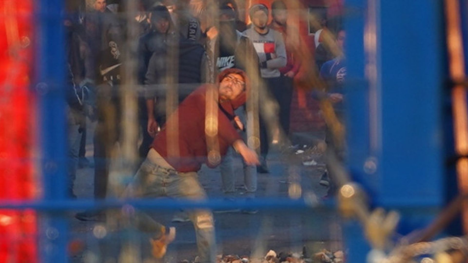 Σε βίντεο φαίνεται μετανάστης να πετά πέτρες πάνω από τον φράχτη.