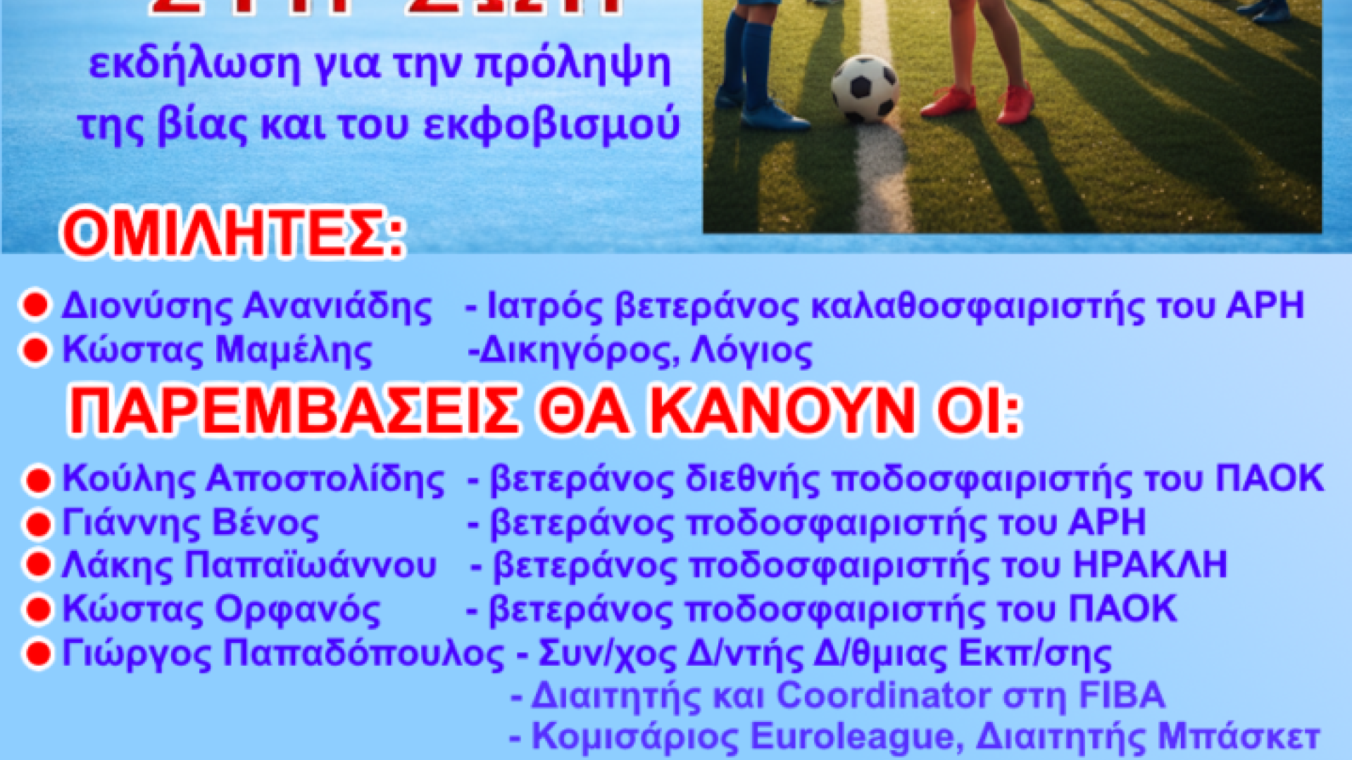 Παρεμβάσεις θα πραγματοποιήσουν οι βετεράνοι ποδοσφαιριστές:
