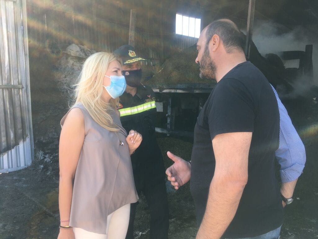 Η Υφυπουργός, στο πλαίσιο της περιοδείας της στο νησί της Λέσβου, επισκέφθηκε χθες το πρωί το σημείο συνοδευόμενη από τον Αντιπρόεδρο της Βουλής και Βουλευτή Λέσβου, κ. Χαράλαμπο Αθανασίου και συνομίλησε με τους Αγροτοκτηνοτρόφους του Συνεταιρισμού, την ώρα που η Πυροσβεστική Υπηρεσία βρισκόταν ακόμη εκεί για την κατάσβεση της πυρκαγιάς.