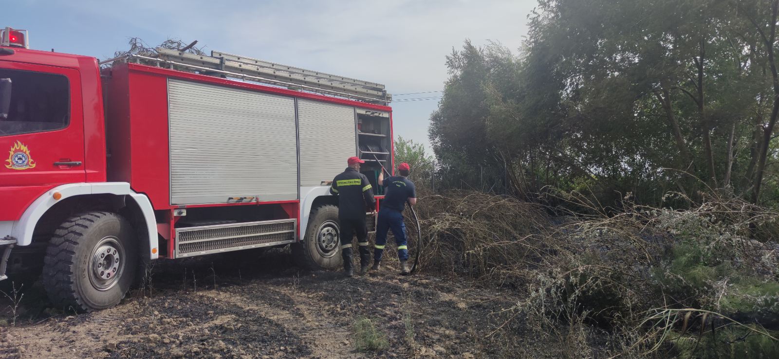 Η φωτιά που ξέσπασε περικύκλωσε και ένα κτήμα το οποίο είχε και σπίτι, με τον ιδιοκτήτη ευτυχώς να διαπιστωνει πως δεν σημειώθηκε κανένα ατύχημα πάρα του ότι στο κτήμα του είχε βενζίνη αλλά και φιάλη υγραερίου. Στο σημείο έσπευσαν δυνάμεις της Πυροσβεστικής με τρεια οχήματα και έξι άνδρες και ευτυχώς κατάφεραν γρήγορα να περιορίσουν τις φλόγες.