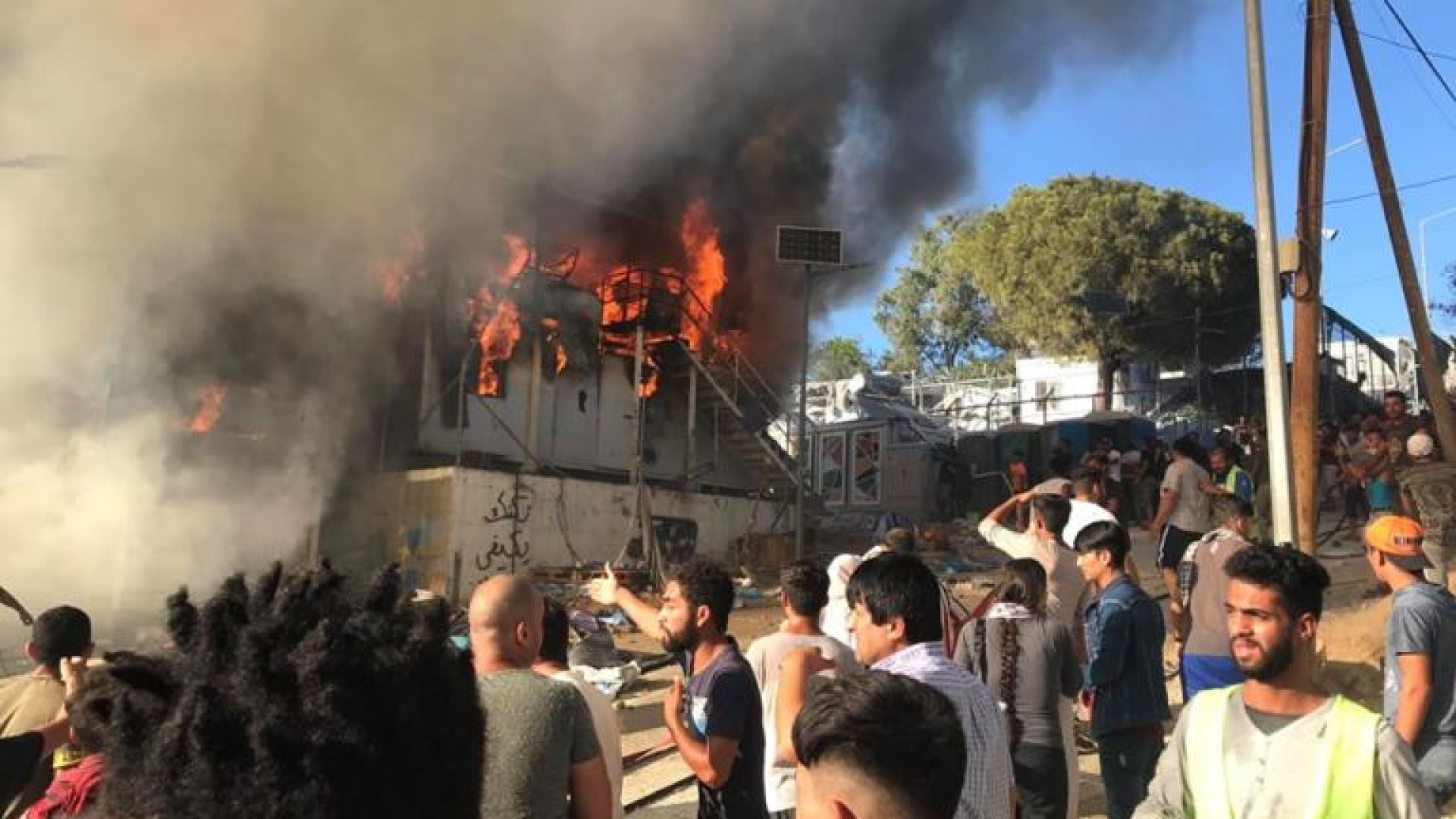 Χάος επικρατεί στη Μόρια από το απόγευμα της Κυριακής, όποτε και ξέσπασε φωτιά σε κοντέινερ με αποτέλεσμα να προκληθεί πανικός.