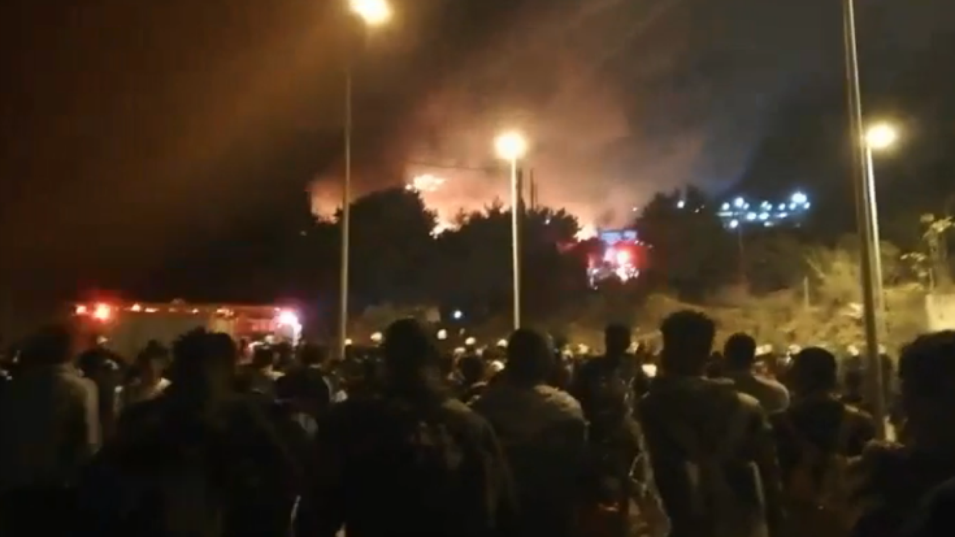 Μετανάστες απομακρύνονται και κατεβαίνουν στο κέντρο της Σάμου, ενώ στο σημείο υπάρχει μεγάλη δύναμη της Πυροσβεστικής αλλά και της Αστυνομίας.