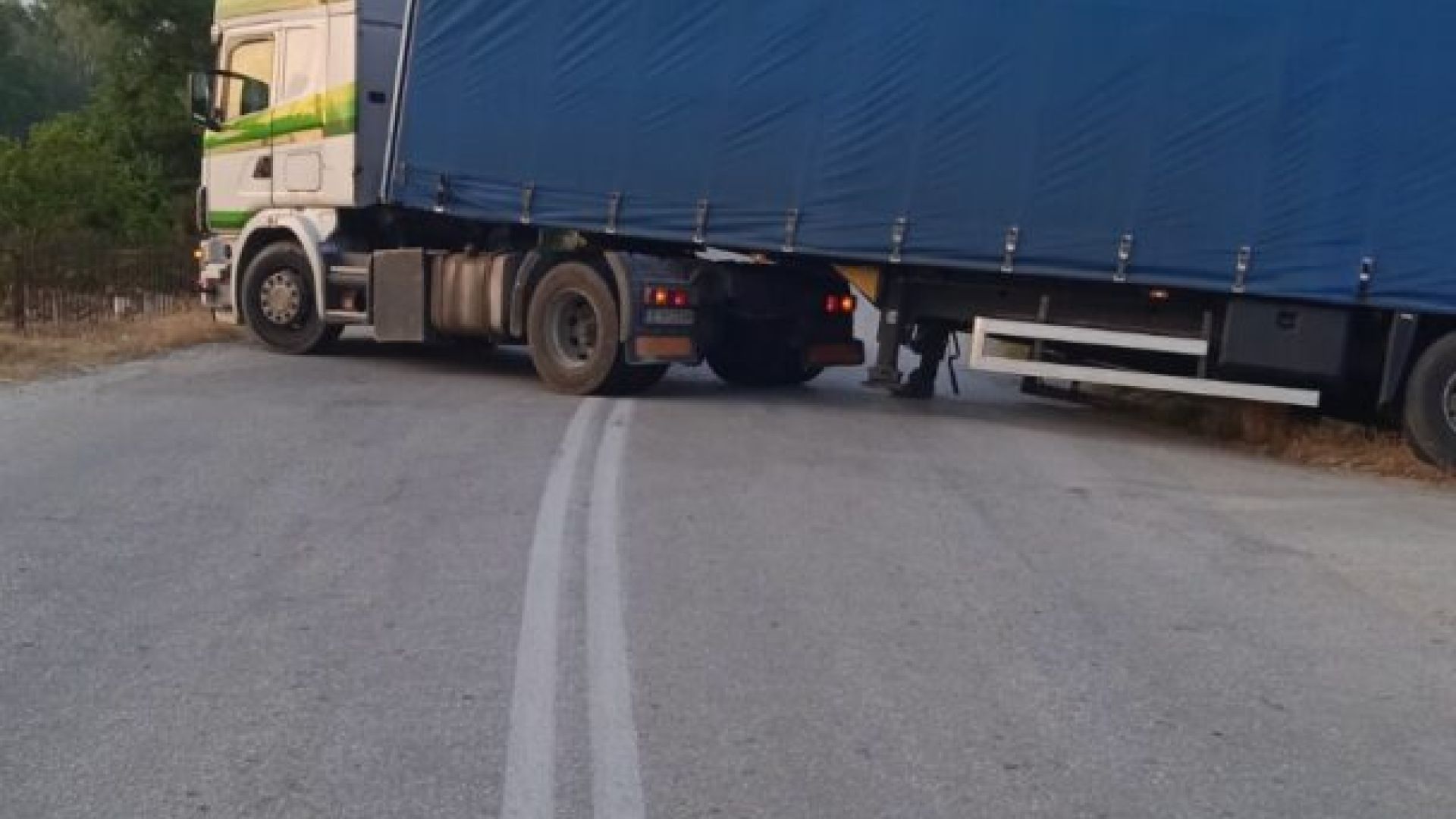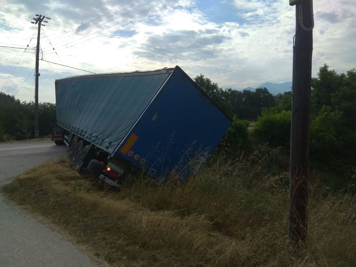 Όταν ο οδηγός αντιλήφθηκε ότι δεν μπορεί να περάσει τη γέφυρα, αποφάσισε να κάνει όπισθεν, με αποτέλεσμα το ρυμουλκό να βγει από το δρόμο, να πάρει κλίση προς τα δεξιά και το όχημα να ακινητοποιηθεί.