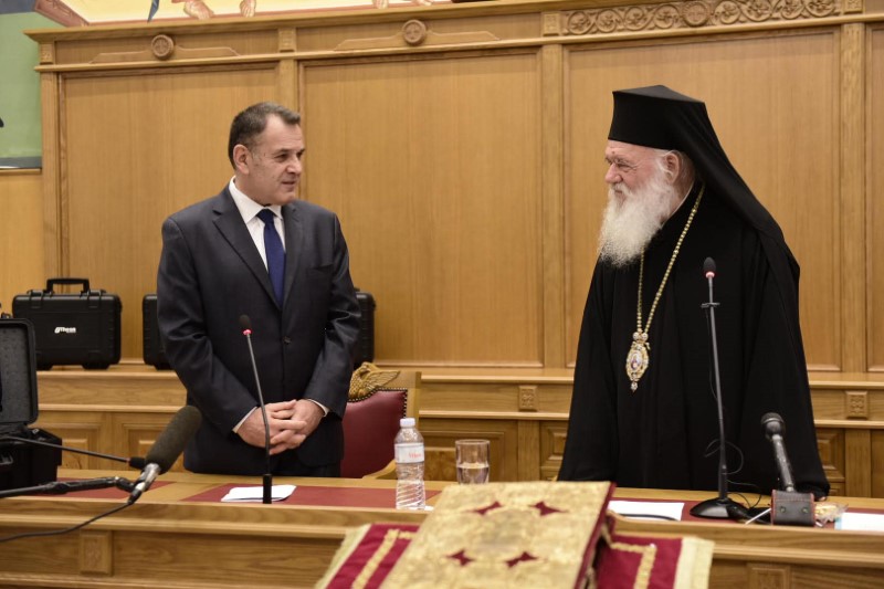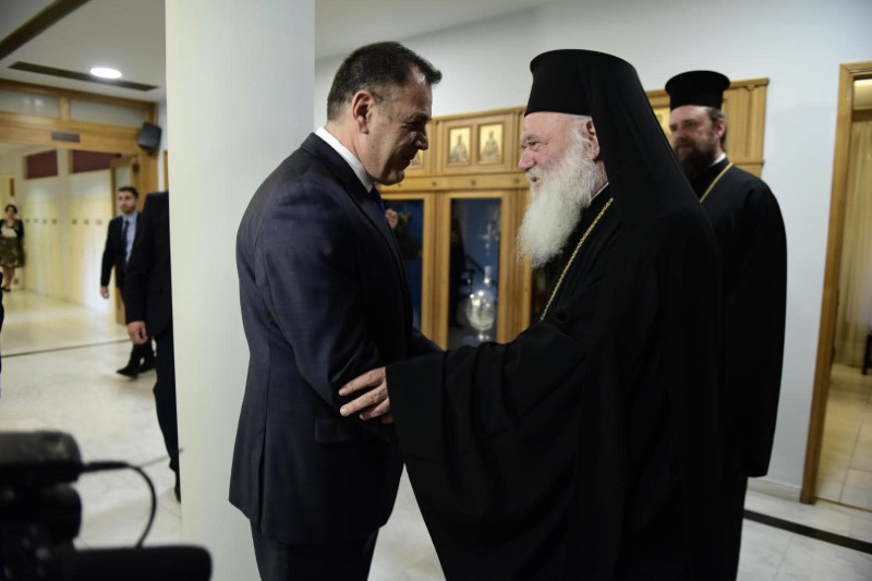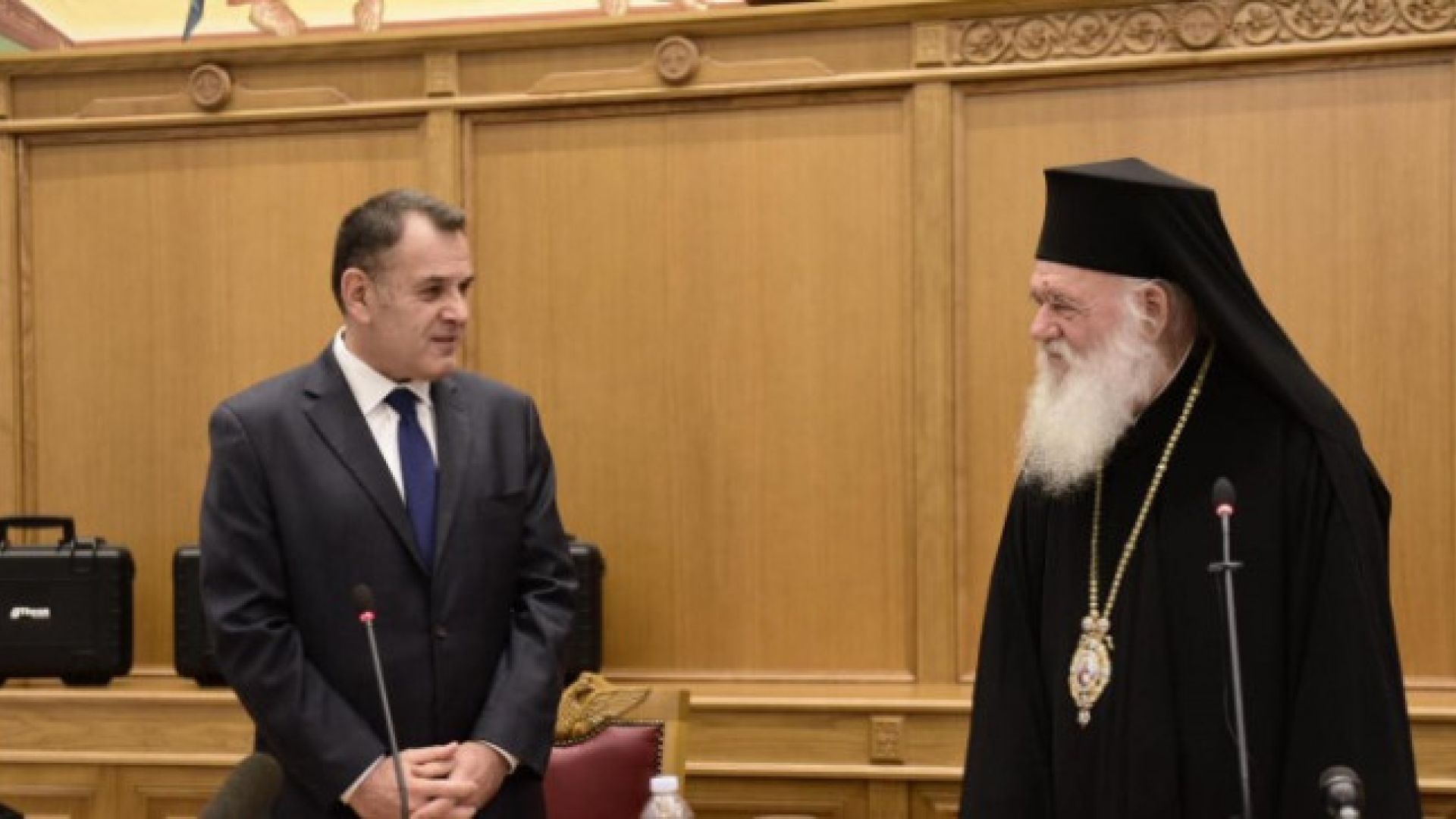 Από την πλευρά του ο υπουργός ευχαρίστησε τον Αρχιεπίσκοπο και τα μέλη της ΔΙΣ υπογραμμίζοντας ότι «ανέκαθεν οι Ένοπλες Δυνάμεις αγωνίζονται για τα εθνικά δίκαια με την βοήθεια και την ευλογία της Εκκλησίας».