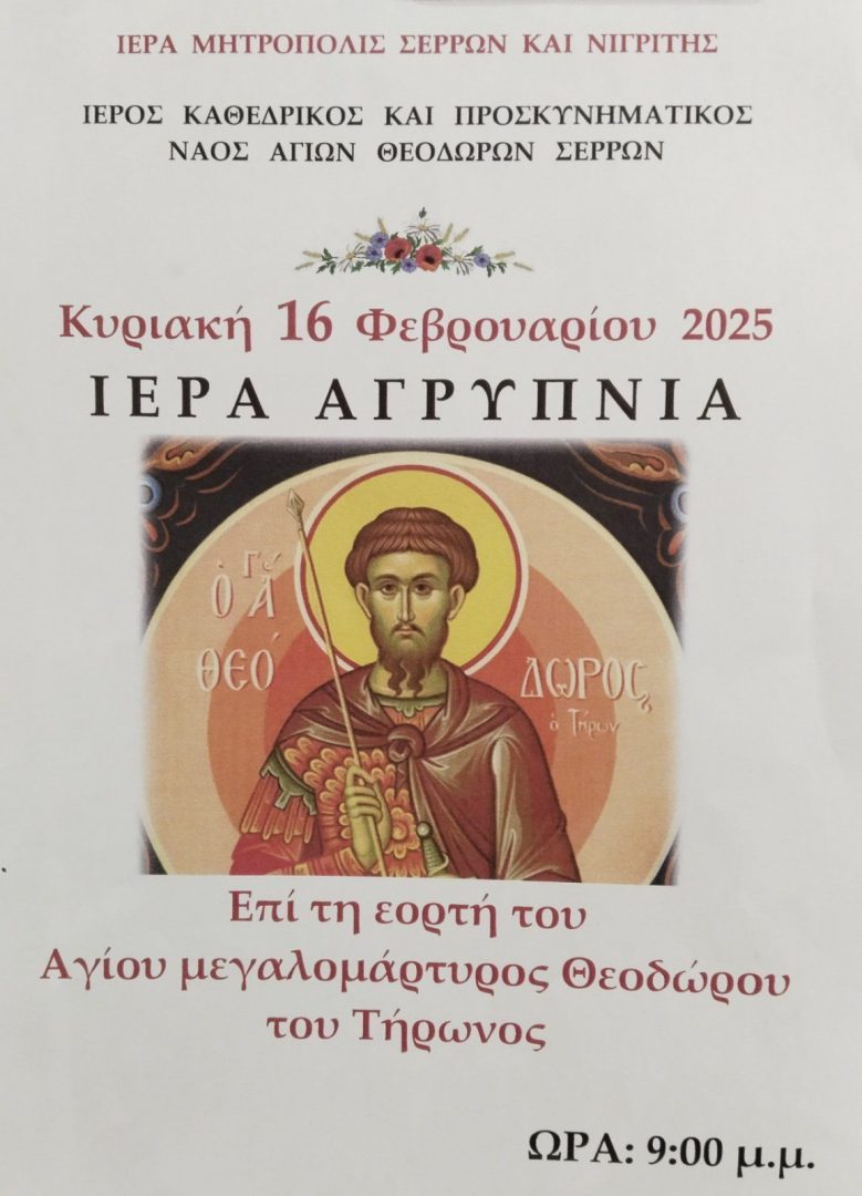ΙΕΡΑ ΑΓΡΥΠΝΙΑ στον Ιερό Ναό Αγίων Θεοδώρων Σερρών