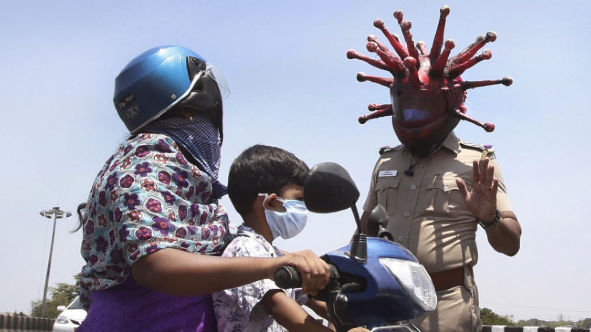 Ο λόγος για τον Ρατζές Μπαμπού, όπως αναφέρει το CNN, έναν αστυνομικό στη νότια πόλη της Τσεννάι, ο οποίος φοράει ένα ειδικά κατασκευασμένο κράνος με το σχήμα του κορωνοϊού, ενώ σταματά οχήματα και πεζούς για έλεγχο.