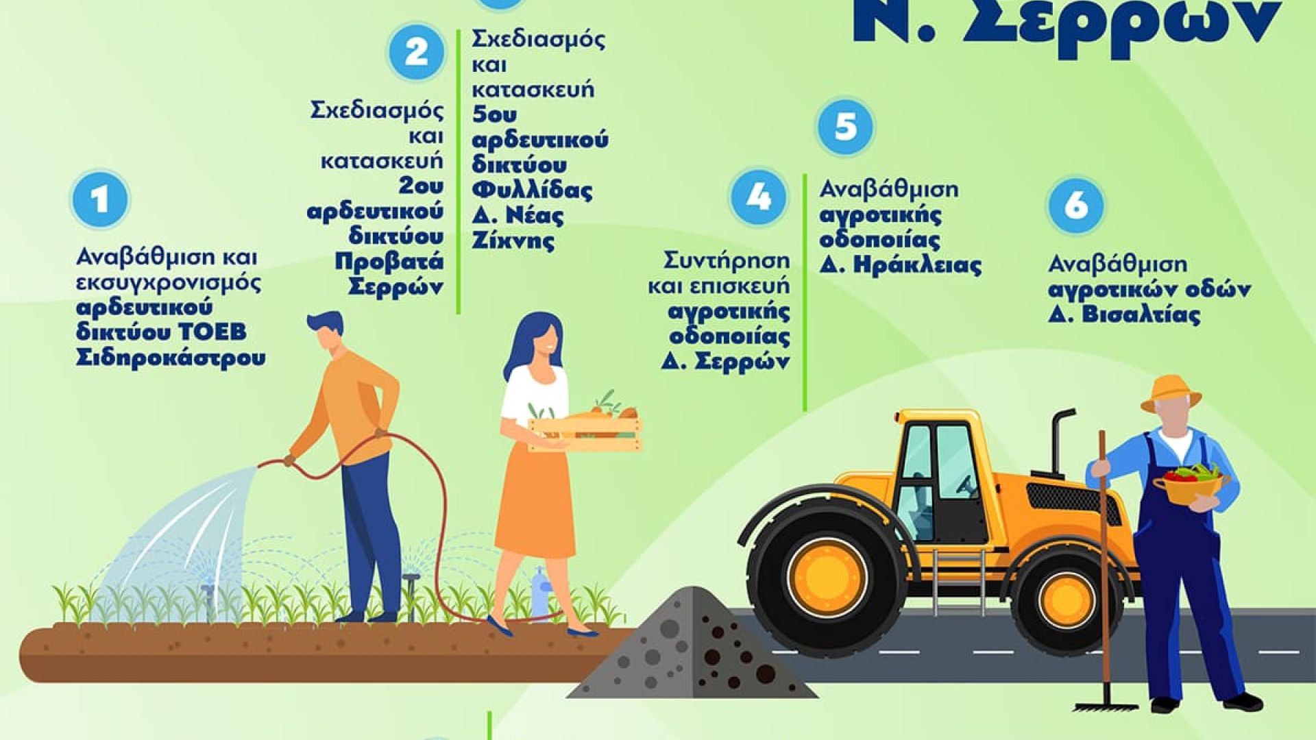 Το ΤΟΕΒ Σιδηροκάστρου ήδη βρίσκεται σε φάση αναβάθμισης, τα ΤΟΕΒ Προβατά και Φυλλίδας έχουν μπει σε τροχιά υλοποίησης και έχουμε θέσει τις βάσεις με την εξασφάλιση χρηματοδότησης για έξι ακόμα αρδευτικά, ώστε σταδιακά ο εκσυγχρονισμός των δικτύων να επεκταθεί σε ολόκληρο τον Νομό.