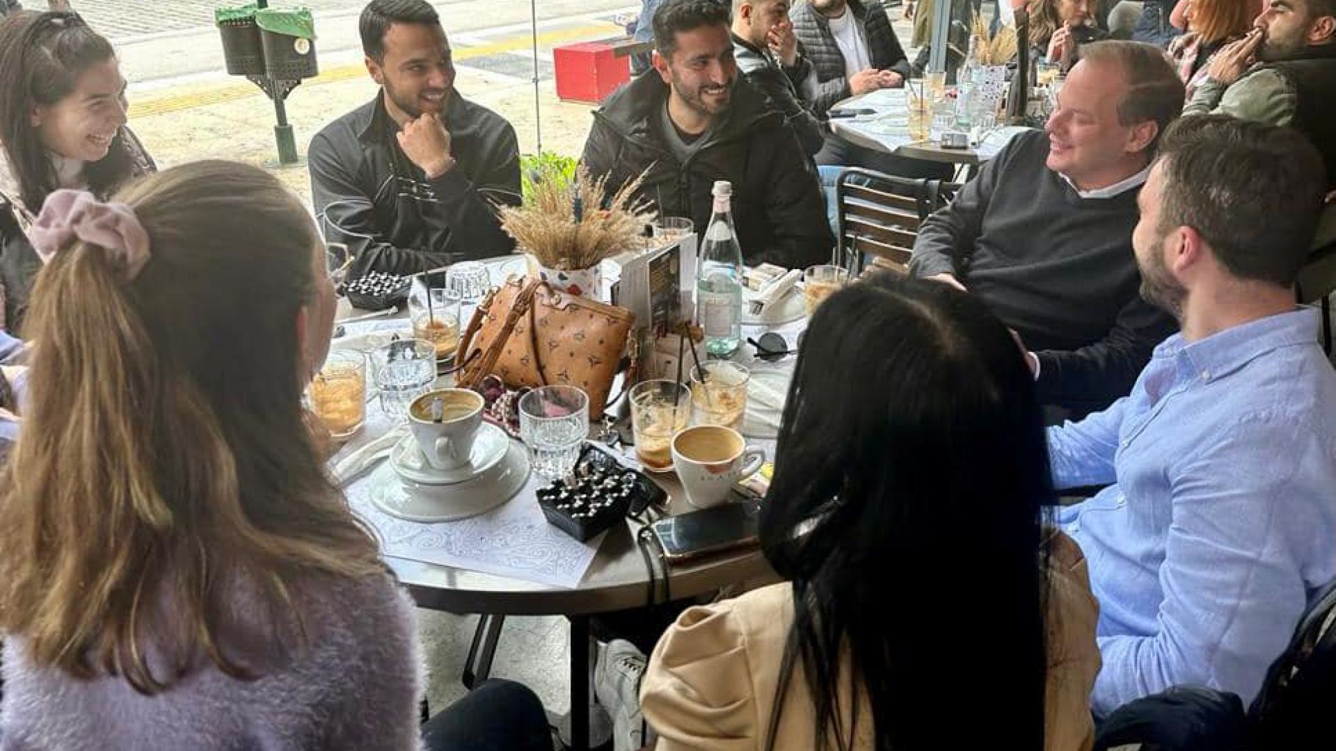 “Μια ξεχωριστή και πολύ ενδιαφέρουσα συνάντηση σήμερα στο κέντρο των Σερρών με νέες και νέους, στην οποία είχαμε την ευκαιρία να ανταλλάξουμε απόψεις για τον τόπο μας, για τα ζητήματα της καθημερινότητας, αλλά και για όλα όσα τους απασχολούν.