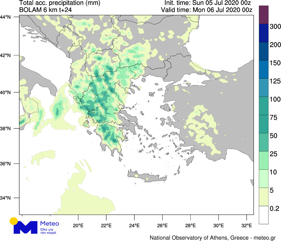 Πιο αναλυτικά, οι βροχοπτώσεις που σημειώθηκαν στη Μακεδονία έως το πρωί θα επεκταθούν σταδιακά στα λοιπά ηπειρωτικά, πλην της Θράκης, και στο Ιόνιο και θα ενισχυθούν ενώ θα σημειωθούν και καταιγίδες. Η πιθανότητα εκδήλωσης χαλαζοπτώσεων είναι αυξημένη, κυρίως στα ορεινά ηπειρωτικά της κεντρικής και βόρειας χώρας. Στο χάρτη που ακολουθεί παρουσιάζεται ο αθροιστικός υετός (βροχές/καταιγίδες) που αναμένεται έως το βράδυ της Κυριακής 05/07.