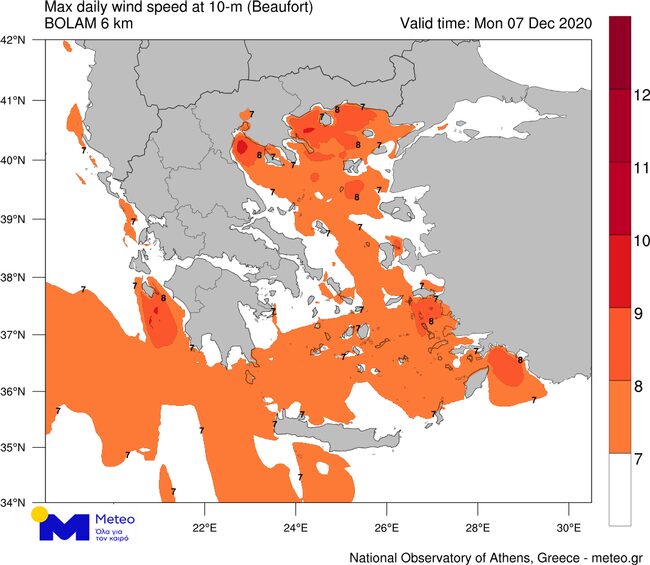 Παράλληλα, η διέλευση του ψυχρού μετώπου θα προκαλέσει πρόσκαιρα θυελλώδεις ανέμους στα πελάγη, με εντάσεις που θα φτάνουν τοπικά τα οκτώ μποφόρ.