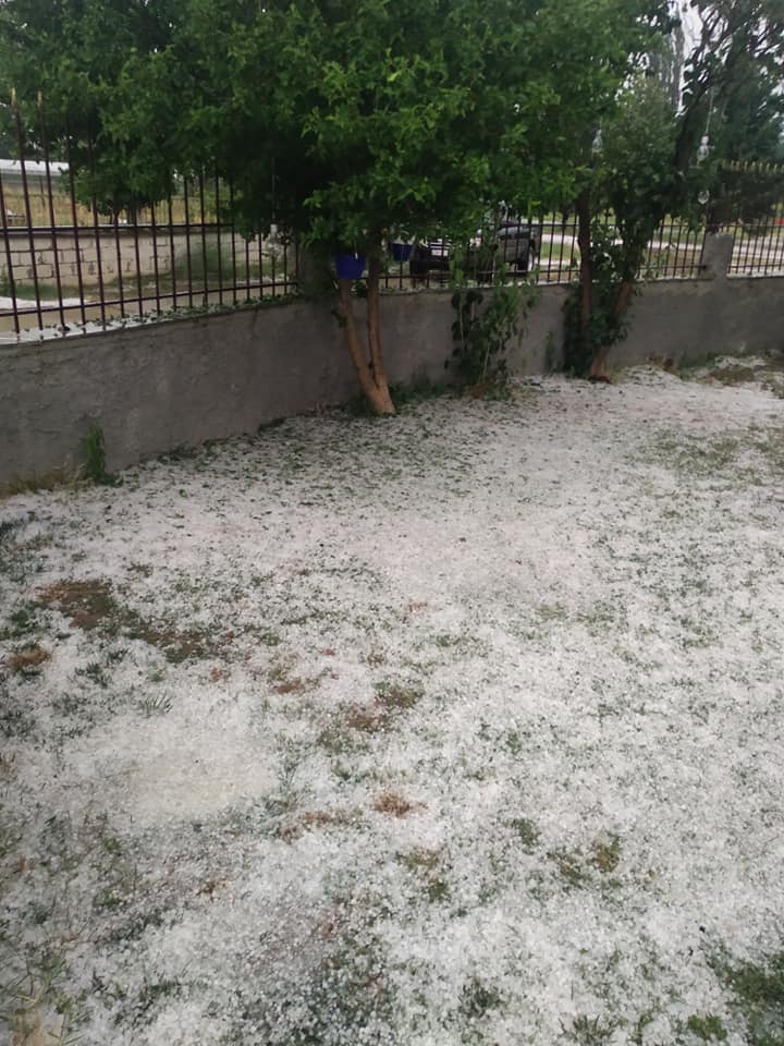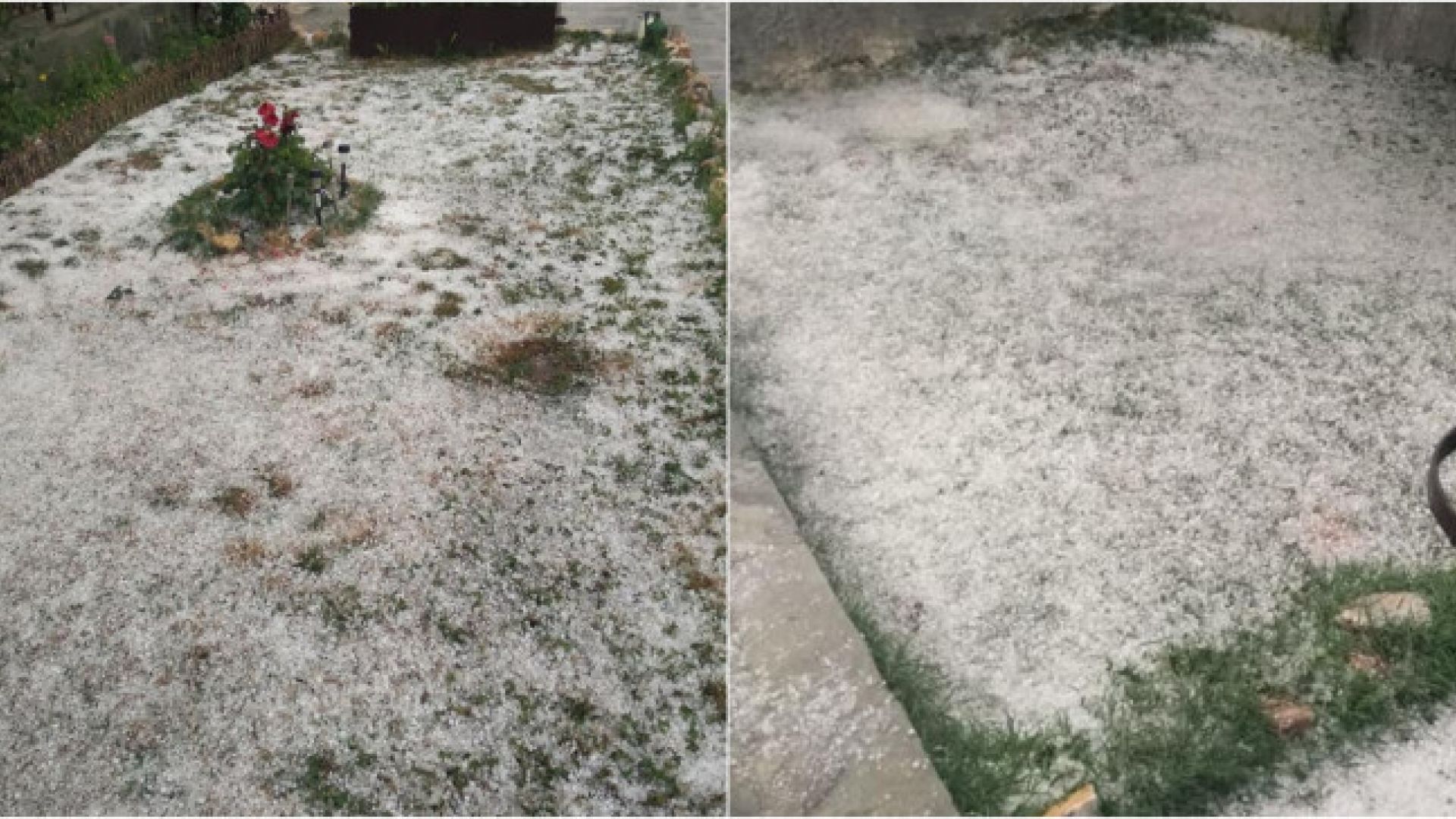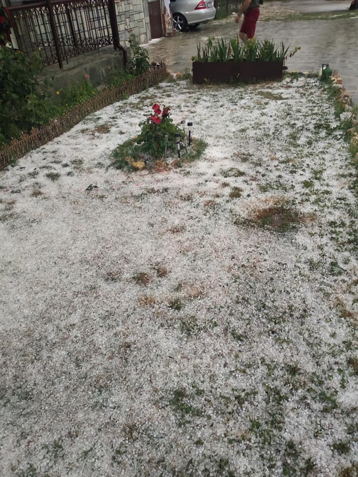 Τι κι αν είναι 4 Ιουλίου; Το χαλάζι χτύπησε για τα καλά το Δροσερό Εορδαίας. Αυλές έγιναν… λευκές από την έντονη χαλαζόπτωση. Χαλάζι στο Δροσερό Εορδαίας. Φωτογραφία: Kozan.gr