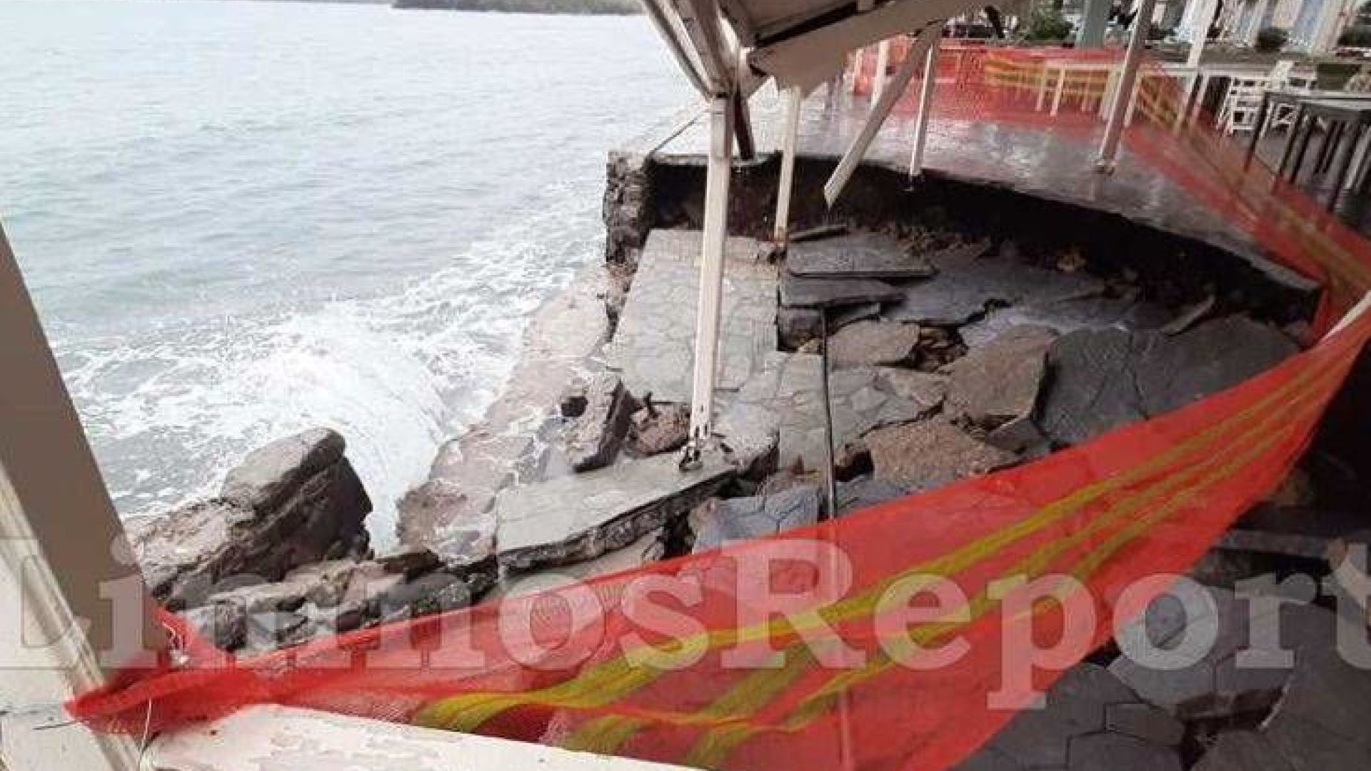Σύμφωνα με το limnosreport.gr, στον Ρωμέικο Γιαλό στη Μύρινα υποχώρησε μέρος του προστατευτικού τοιχίου της παραλίας, δημιουργώντας τρύπα διαμέτρου ενός μέτρου.