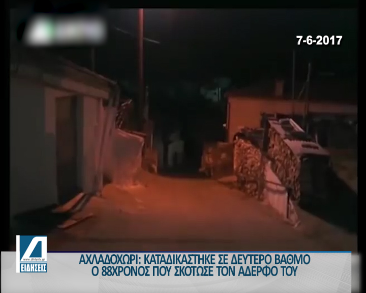 Ποινή κάθειρξης 10 ετών και φυλάκιση 12 μηνών επέβαλε το Μικτό Ορκωτό Εφετείο Θεσσαλονίκης στον 88χρονο, που το 2017, σκότωσε τον 81χρονο αδελφό του, στο Αχλαδοχώρι. Σύμφωνα, με το grtimes.gr o ηλικιωμένος, είχε καταδικαστεί σε πρώτο βαθμό με 10ετη κάθειρξη και φυλάκιση 20 μηνών για την αδελφοκτονία, από το Μικτό Ορκωτό Δικαστήριο Έδεσσας. Σύμφωνα με τη δικαστική απόφαση ο καταδικασθείς θα εκτίσει την ποινή στο σπίτι του λόγω γήρατος.