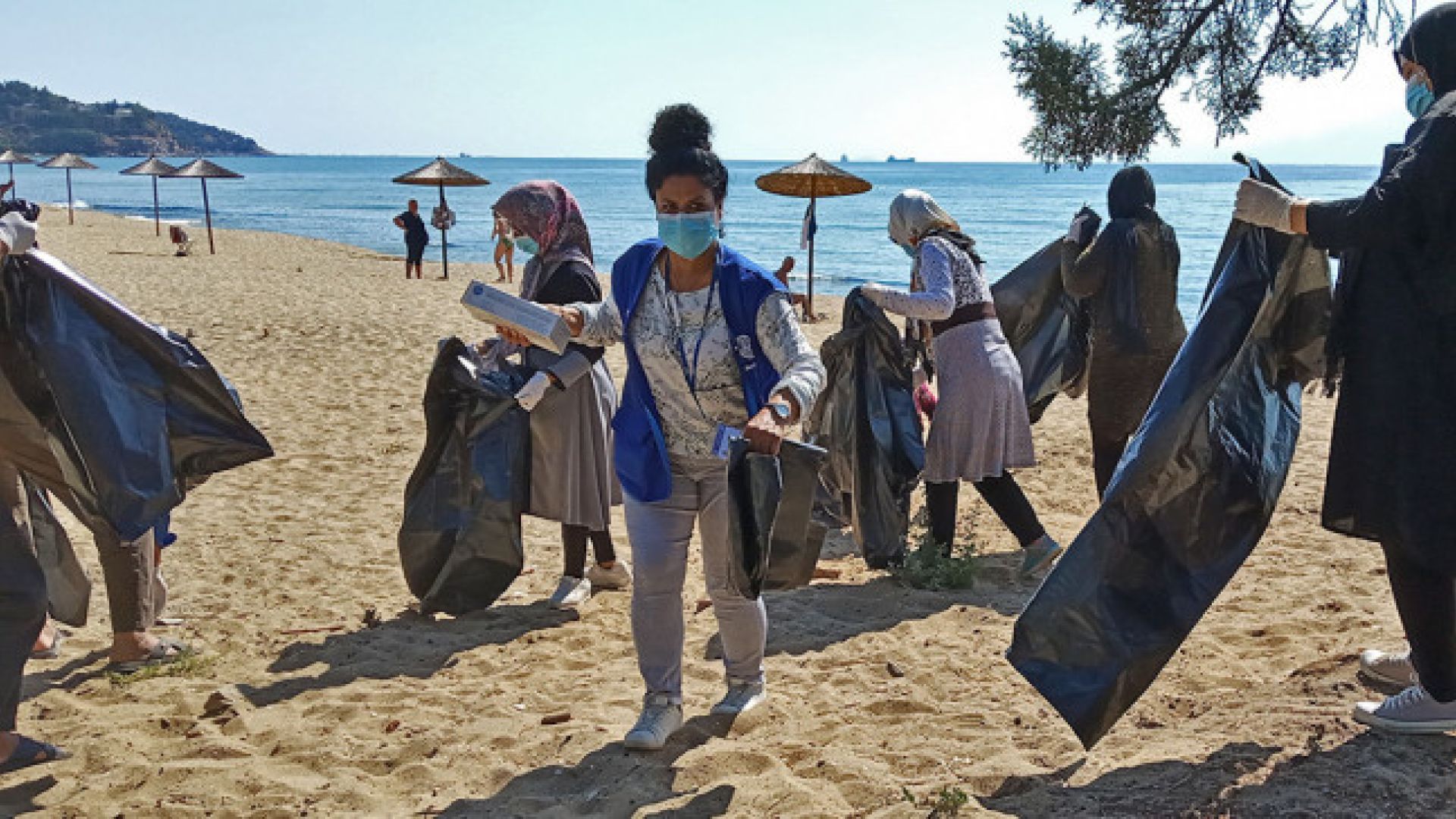 Ο Δήμος Καβάλας χορήγησε σακούλες, γάντια, μάσκες και οι πρόσφυγες συγκέντρωσαν όλα τα σκουπίδια που υπήρχαν κατά μήκος της παραλίας, στην οποία περνούσαν το μεγαλύτερο μέρος της ημέρας τους μαζί με τις οικογένειές τους, κατά τη διάρκεια του καλοκαιριού.