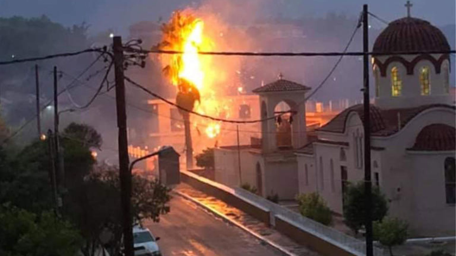 Στις Κεραμειές, ένας κεραυνός έπεσε σε κατοικημένη περιοχή και προκάλεσε φωτιά.