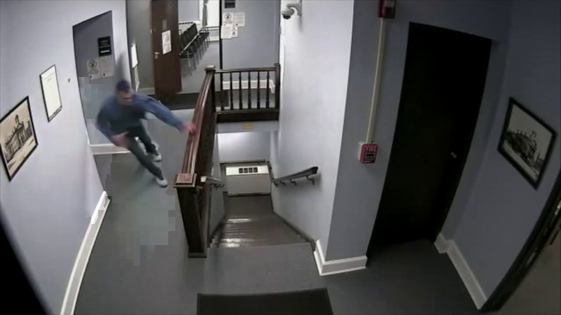 Ο 34χρονος Νίκολαους Γκάρισον καταδικάστηκε σε εξάμηνη φυλάκιση για κατοχή ποσότητας μεθαμφεταμίνης την περασμένη Τρίτη. Βίντεο από κάμερα ασφαλείας του δικαστηρίου της κομητείας Χάιλαντ καταγράφει τη στιγμή που οι αστυνομικοί συνοδεύουν τον Γκάρισον κι ο παράτολμος άνδρας το βάζει στα πόδια τρέχοντας εκτός της αίθουσας. Ο σερίφης Ντόνι Μπαρέρα κι ο βοηθός του, Μπεν Ρένο τον κυνηγούν απεγνωσμένα και μάλιστα ο πρώτος κάνει βουτιά πάνω από το προστατευτικό κάγκελο για να τον συλλάβει, για να προσγειωθεί τελικά με την πλάτη στις σκάλες.