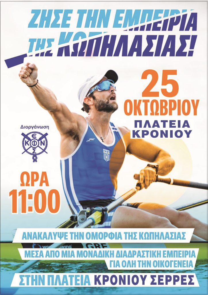 «Η Κωπηλασία στις Πλατείες!» είναι η δράση που διοργανώνει η Ελληνική Κωπηλατική Ομοσπονδία (Ε.Κ.Ο.Φ.Ν.Σ.) το Σάββατο 25 Οκτωβρίου 2025, στις 11:00 το πρωί, ταυτόχρονα σε όλη την Ελλάδα και στις Σέρρες θα λάβει χώρα σστην Πλατεία Κρονίου, υπό τον Ναυταθλητικό Περιβαλλοντικό Σύλλογο Πεθελινού Σερρών «ΚΕΡΚΙΝΙΤΙΣ», που συμμετέχει στη μεγάλη πανελλήνια δράση