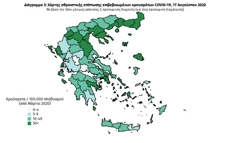 Η κατανομή των κρουσμάτων κορωνοϊού