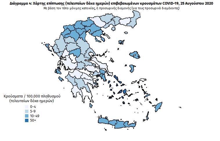 Ο ΕΟΔΥ ανακοίνωσε 168 νέα κρούσματα κορωνοϊού στη χώρα μας την Τρίτη 25/8.