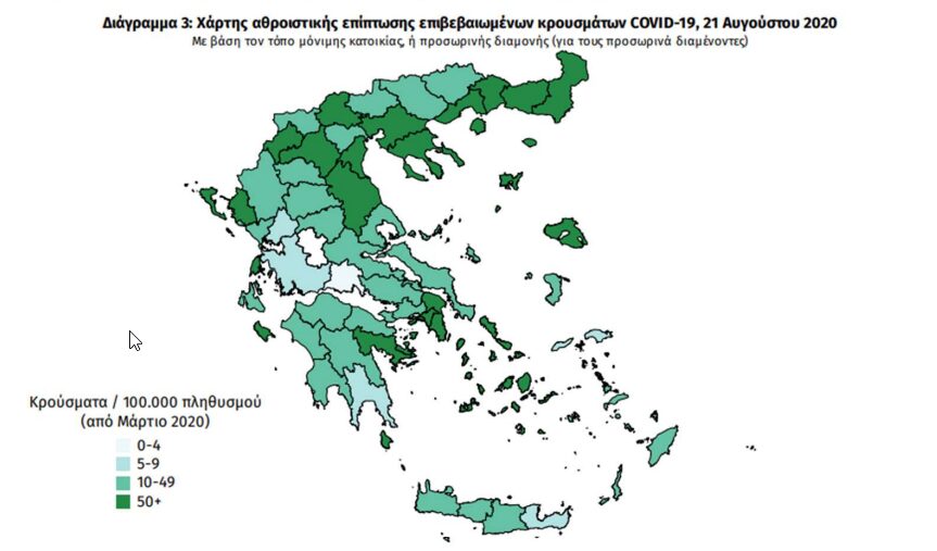 H κατανομή των κρουσμάτων κορωνοϊού στην Ελλάδα