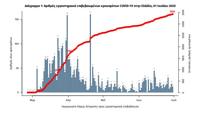 Σήμερα ανακοινώνουμε 23 νέα κρούσματα του νέου ιού στη χώρα. Ο συνολικός αριθμός των κρουσμάτων είναι 3.432, εκ των οποίων το 55.0% άνδρες αφορά άνδρες.