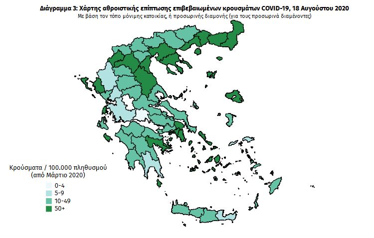 Η κατανομή των κρουσμάτων κορωνοϊού