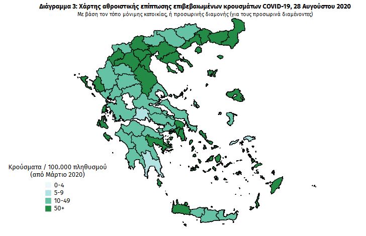 2012 (20.5%) θεωρούνται σχετιζόμενα με ταξίδι από το εξωτερικό και 4347 (44.4%) είναι σχετιζόμενα με ήδη γνωστό κρούσμα.