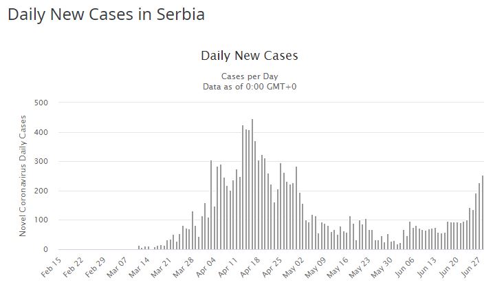 Στην Σερβία έχουν επιβεβαιωθεί μόνο το τελευταίο 24ωρο, 254 νέα κρούσματα και τρία θύματα (270 τα θύματα συνολικά και τα κρούσματα 14.046), ενώ στην Αλβανία, το Κόσοβο, αλλά και την Βουλγαρία, παρουσιάζεται αύξηση των κρουσμάτων.