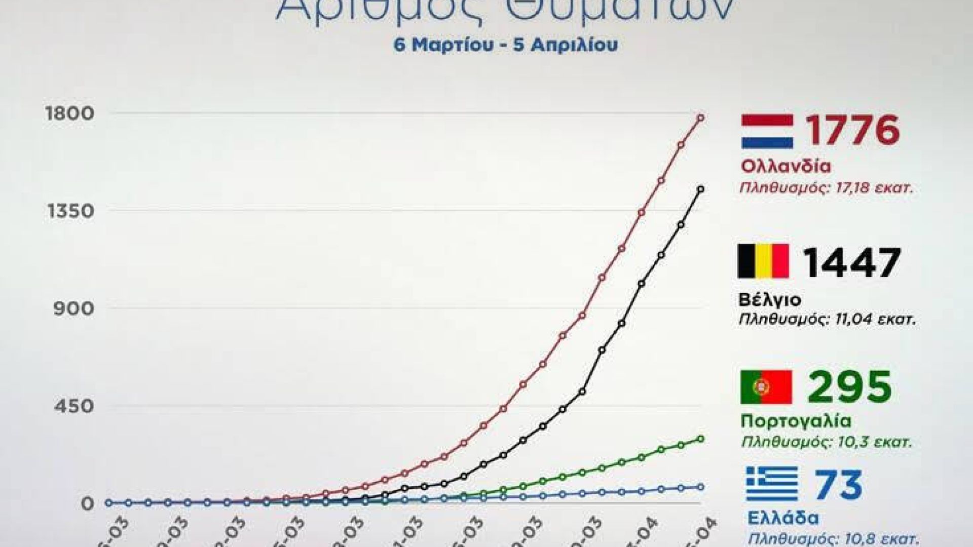 Σύμφωνα με το διάγραμμα με τον αριθμό των κρουσμάτων κορονοϊού, στην Ελλάδα ήταν μέχρι χθες 1.735, ενώ σε ευρωπαϊκές χώρες με παρόμοιο πληθυσμό, όπως η Πορτογαλία η το Βέλγιο, ο αριθμός τους είναι πενταψήφιος.