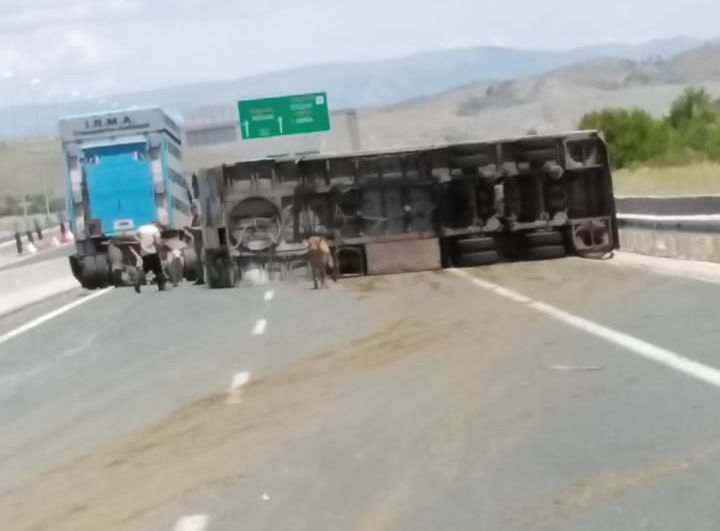 Το βαρύ όχημα, άγνωστο ακόμη για ποιο λόγο, εξετράπη της πορείας του, προσέκρουσε στο στηθαίο και τούμπαρε στο οδόστρωμα, με αποτέλεσμα να τραυματιστούν κάποιες από τις αγελάδες που μετέφερε. Πολλά από τα ζώα βγήκαν από το καμιόνι και κυκλοφορούσαν ελεύθερα στην κλειστή Εγνατία Οδός.