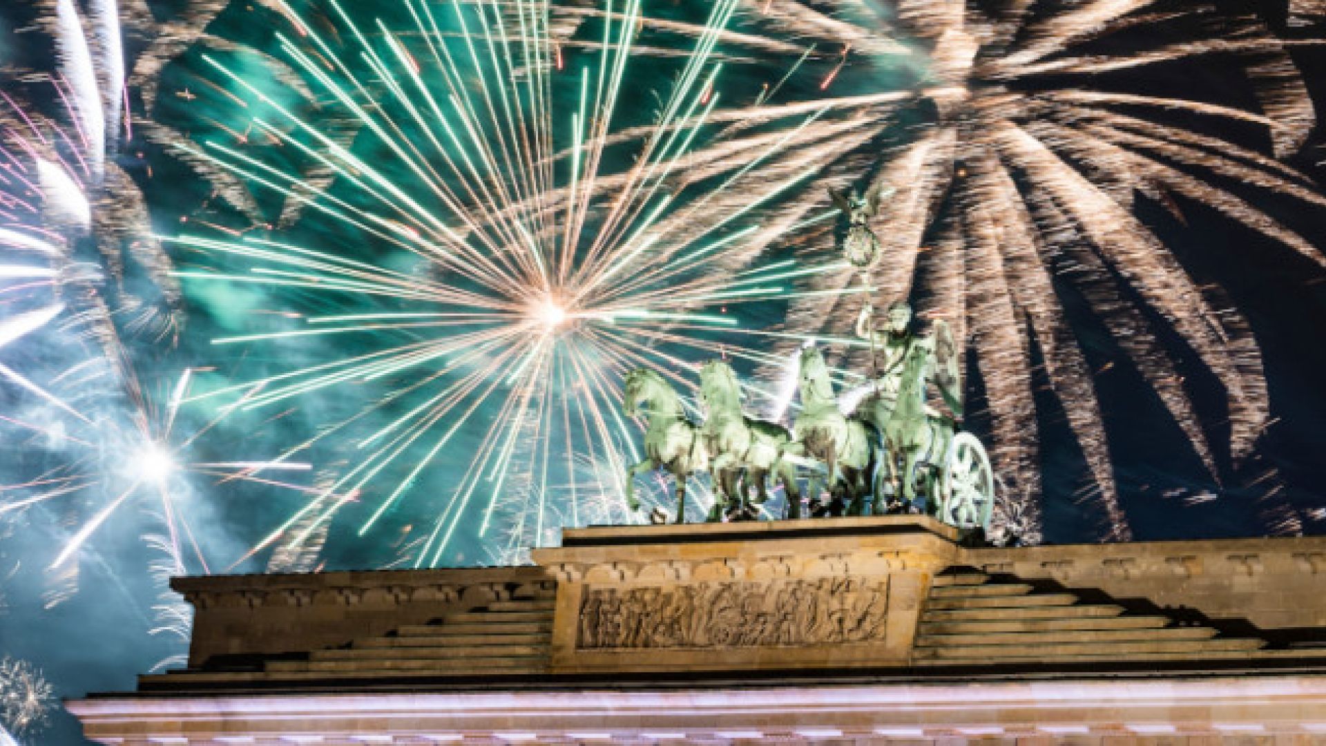 Πυροτεχνήματα πάνω από την πύλη του Βρανδεμβούργου στο Βερολίνο