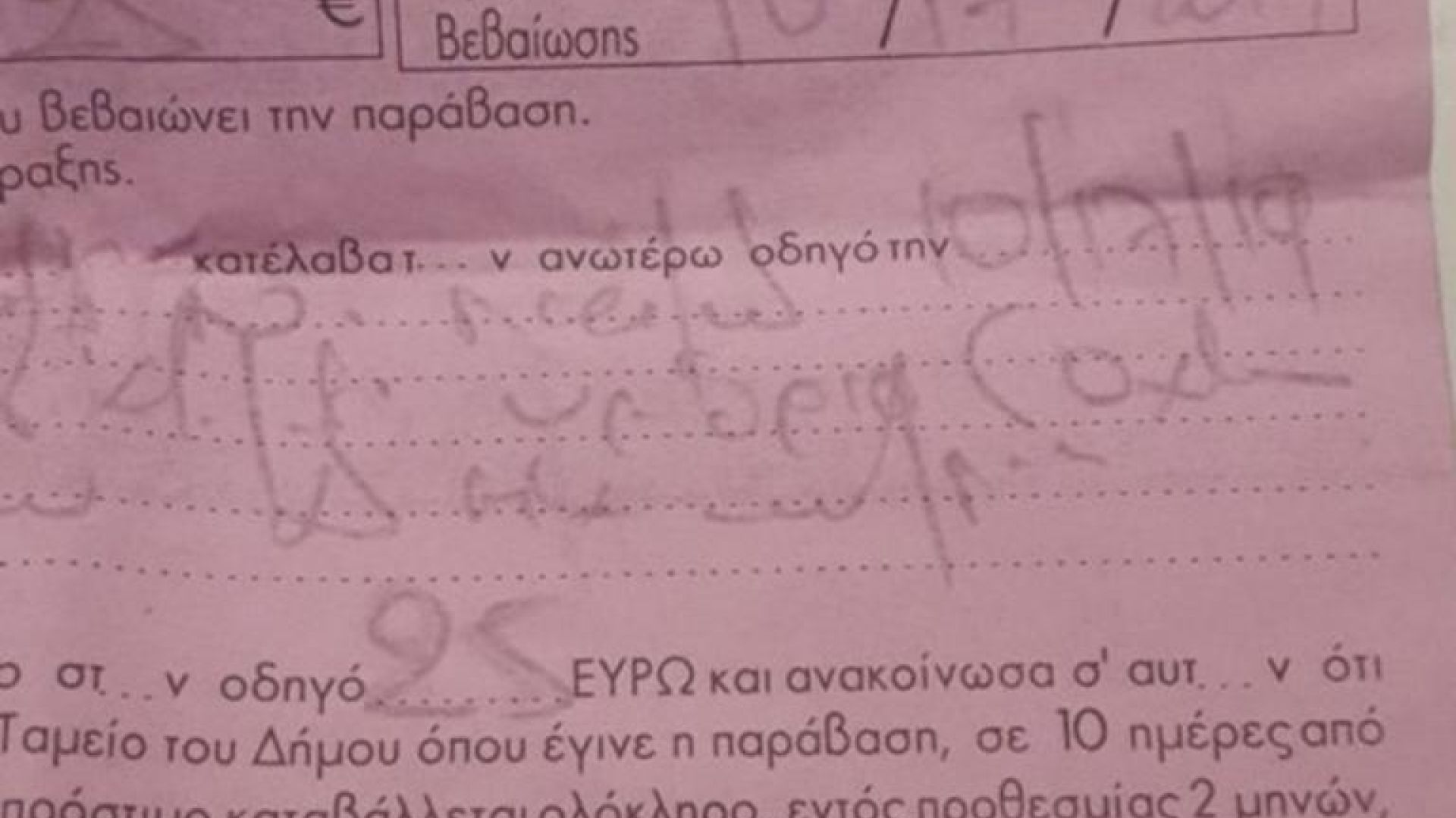 Ένας οδηγός σταμάτησε σε μπλόκο και ο τροχονόμος του έκοψε κλήση για υπερβολική ταχύτητα. Όταν πρόσεξε τι έγραψε σε αυτή, προσπαθούσε να καταλάβει τι ήταν αυτό που έβλεπε…