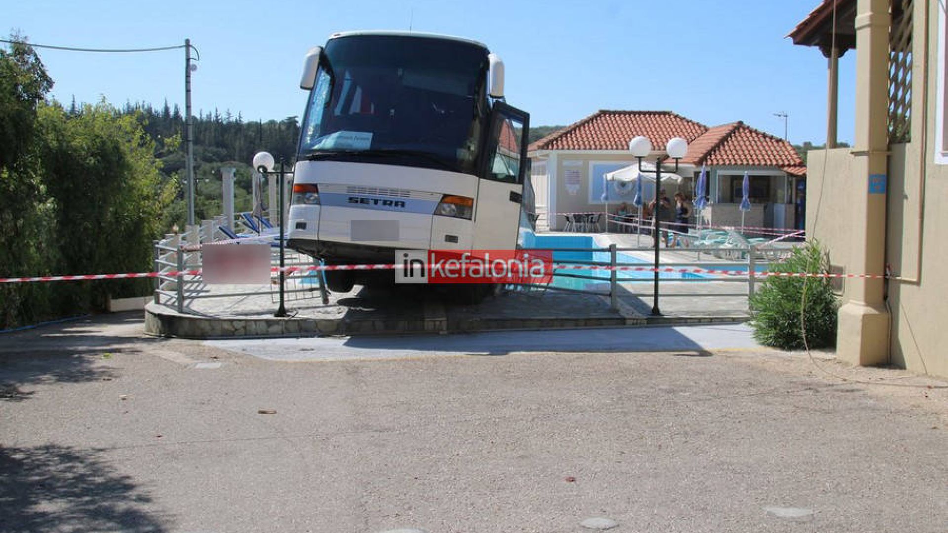 Στην πισίνα ξενοδοχείου, στα Τραυλιάτα Κεφαλονιάς, κατέληξε ένα λεωφορείο το πρωί της Τετάρτης.