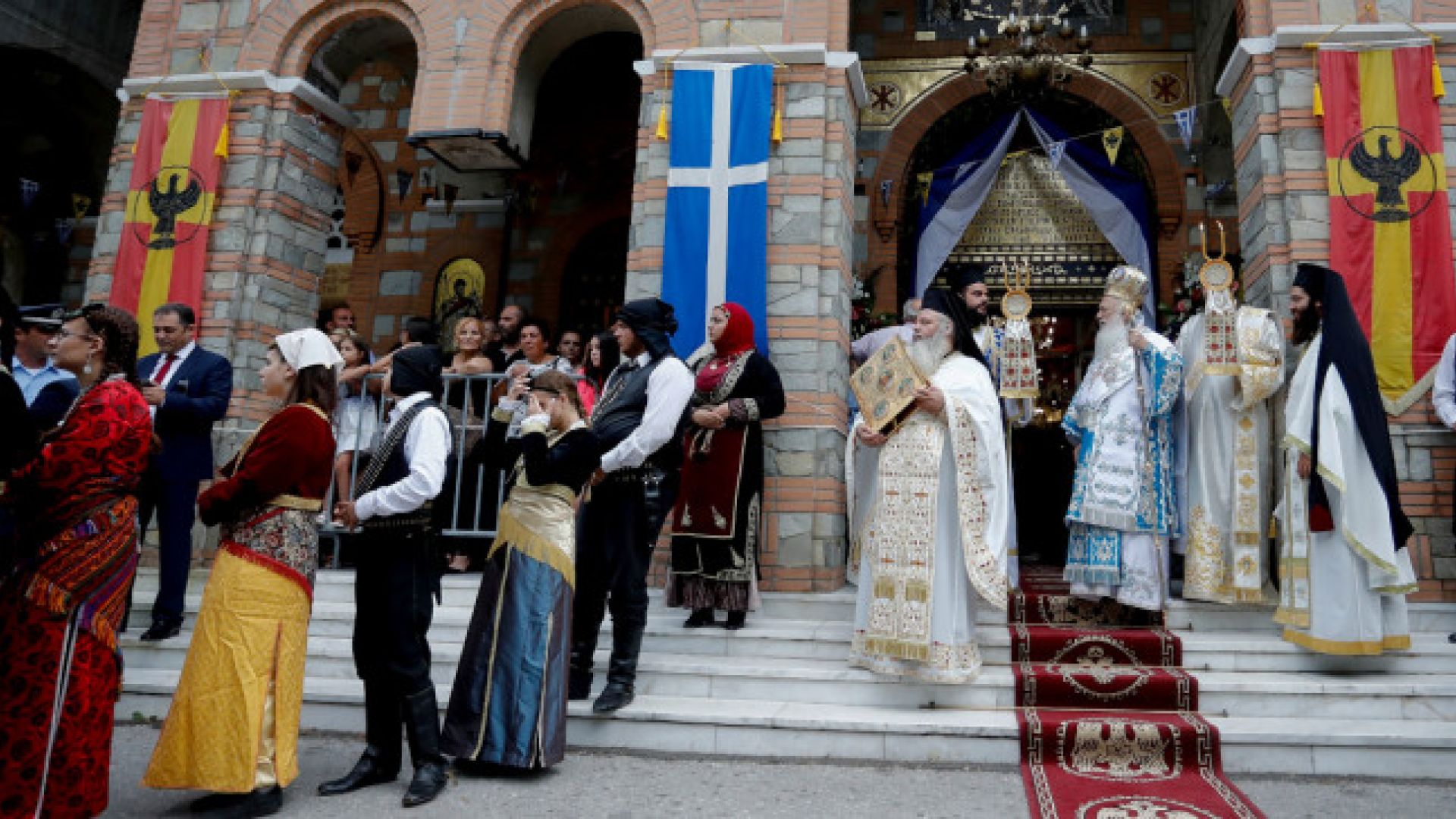 Ακολούθησε η επίσημη έξοδος της εικόνας της Παναγίας Σουμελά και η κατάθεση στεφάνων στην προτομή του Αλέξανδρου Υψηλάντη.