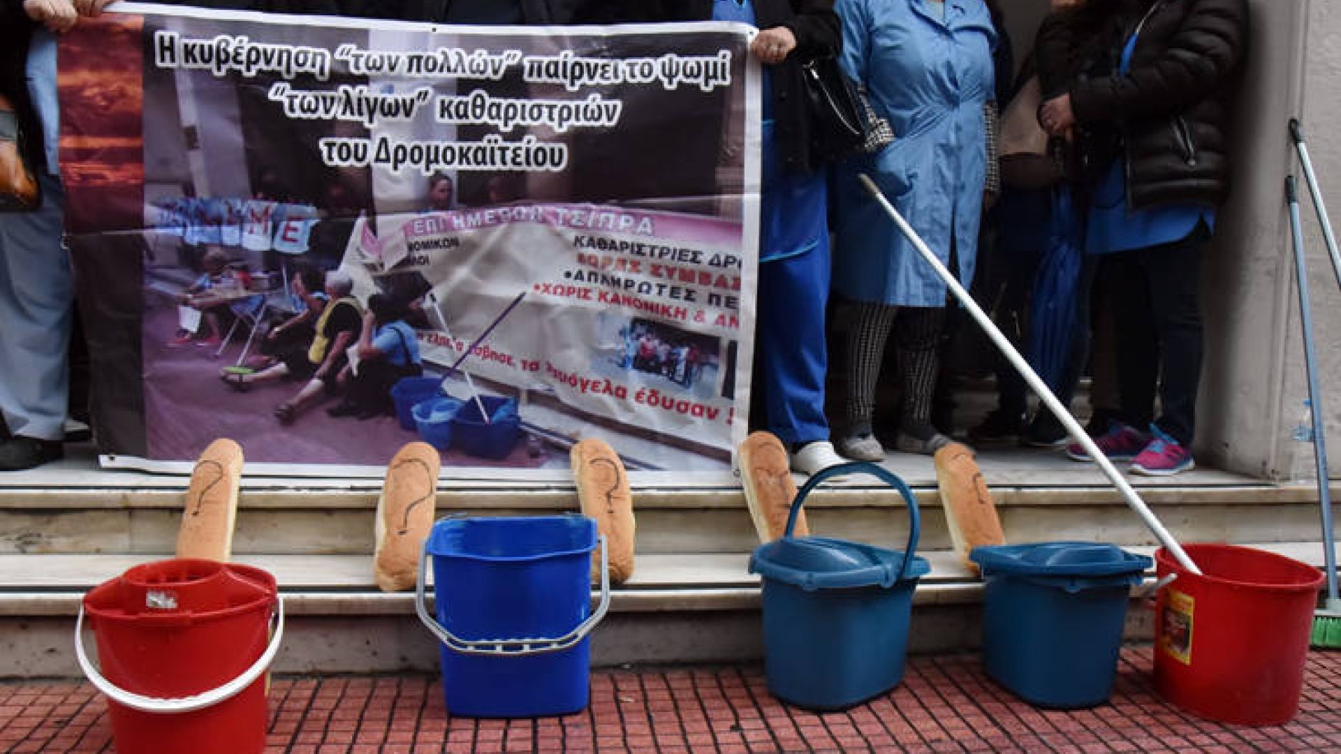 Με κουβάδες και καρβέλια ψωμί διαμαρτύρονται οι καθαρίστριες του Δρομοκαΐτειου