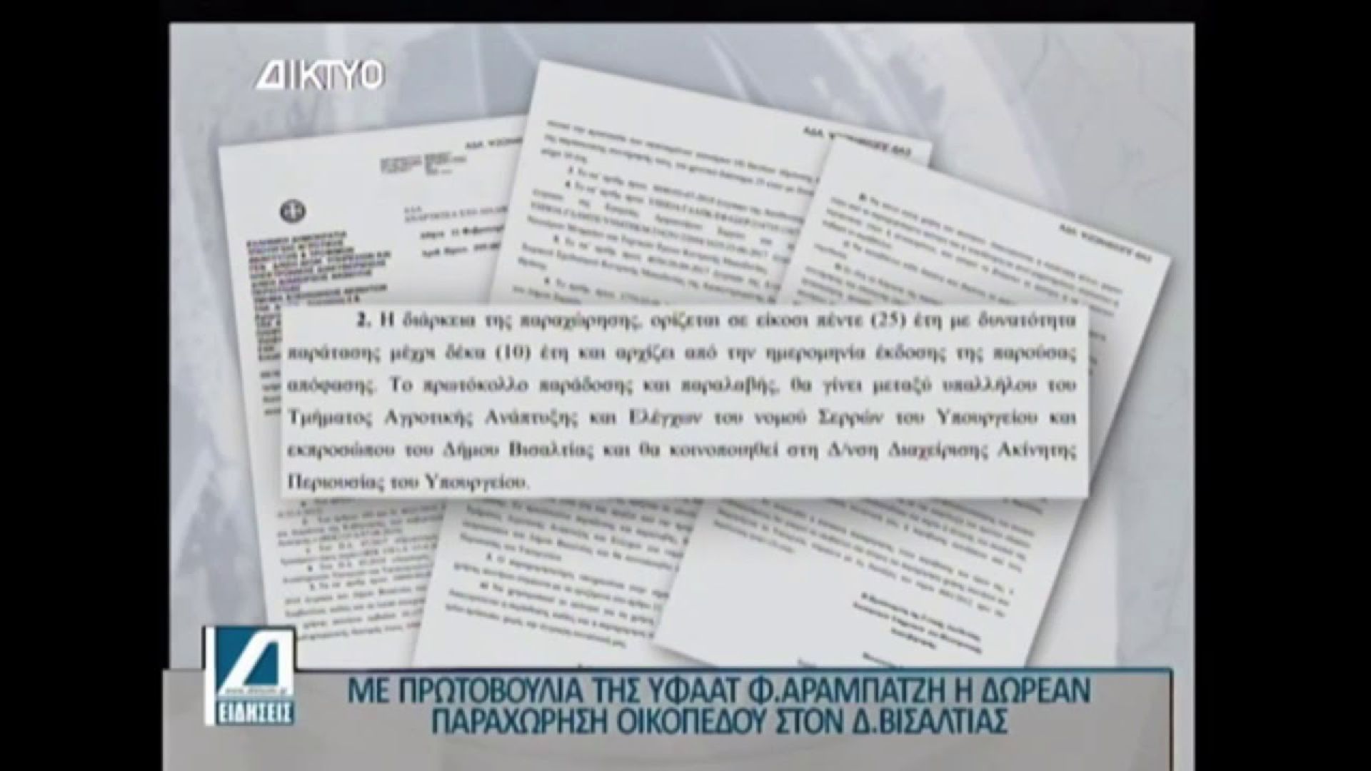 Με πρωτοβουλία της ΥΦΑΑΤ Φ. Αραμπατζή η δωρεάν παραχώρηση οικοπέδου στον Δ. Βισαλτίας