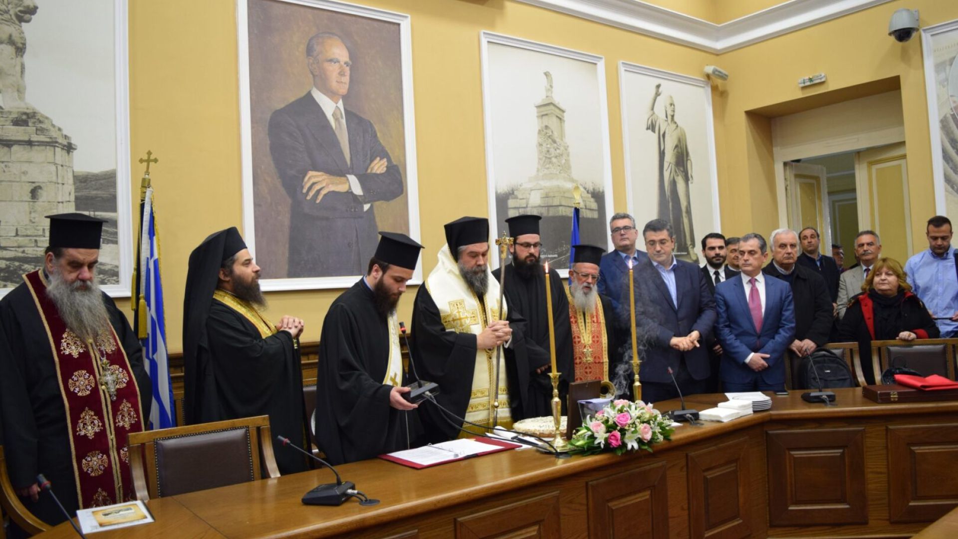 Ο Περιφερειάρχης στην αντιφώνησή του, ευχαρίστησε τον Σεβασμιώτατο για την παρουσία του και δήλωσε, αναφερόμενος σε σχετική μνεία του Μητροπολίτη, ότι η Διοίκηση και οι εργαζόμενοι στην Περιφέρεια εργάζονται από κοινού με όραμα, σχέδιο και στόχο την ευημερία των συμπολιτών μας και όχι ως απλοί διαχειριστές της καθημερινότητας.