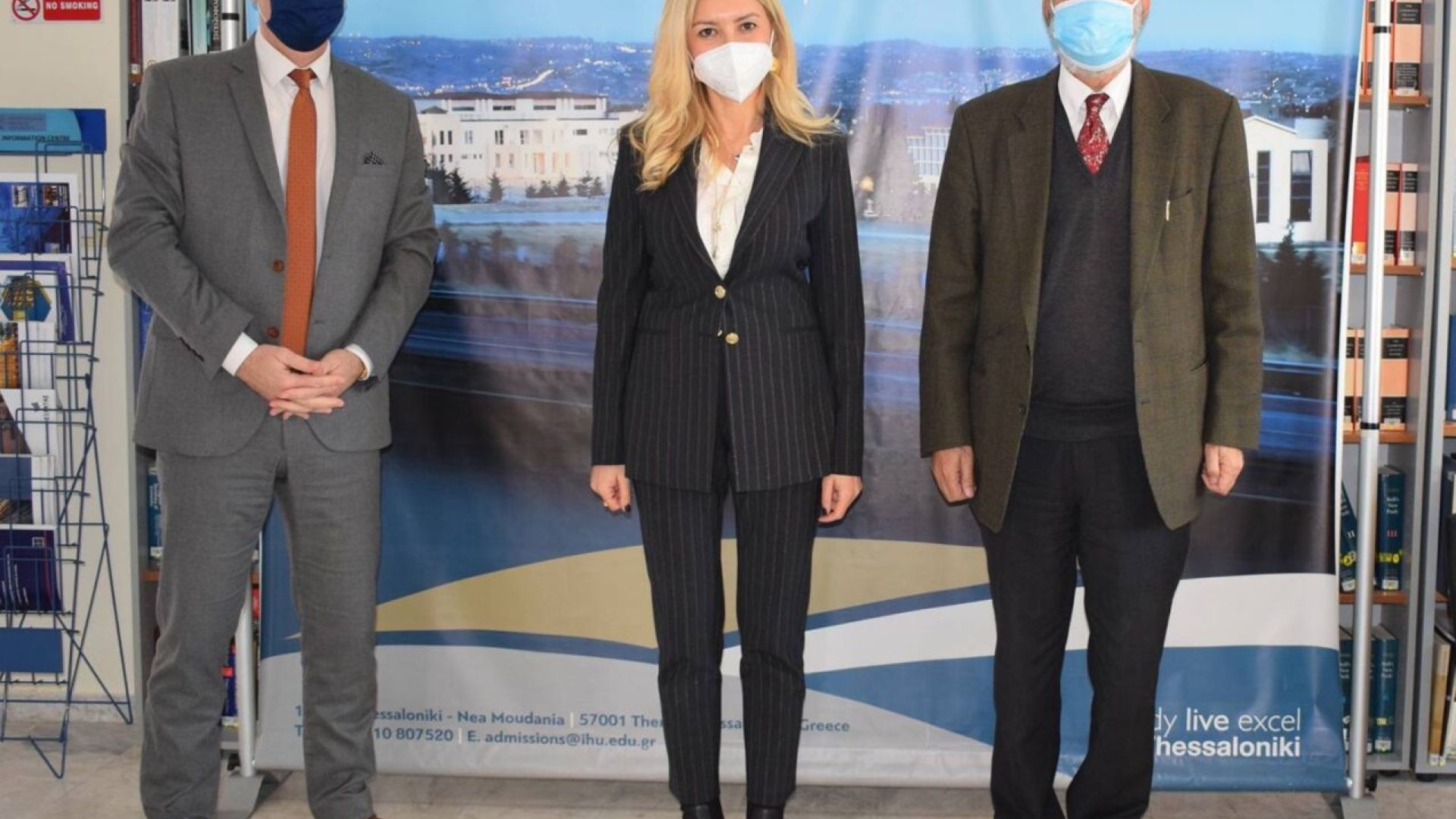 Η προοπτική συνεργειών μεταξύ Υπουργείου Αγροτικής Ανάπτυξης & Τροφίμων και Διεθνούς Πανεπιστημίου της Ελλάδος απασχόλησε τη συνάντηση που είχε το πρωί της Δευτέρας (01/03/2021) η Υφυπουργός Αγροτικής Ανάπτυξης & Τροφίμων κ. Φωτεινή Αραμπατζή με τον Πρύτανη του Ιδρύματος κ. Αθανάσιο Καΐση, στις εγκαταστάσεις του Ιδρύματος, στη Θέρμη.