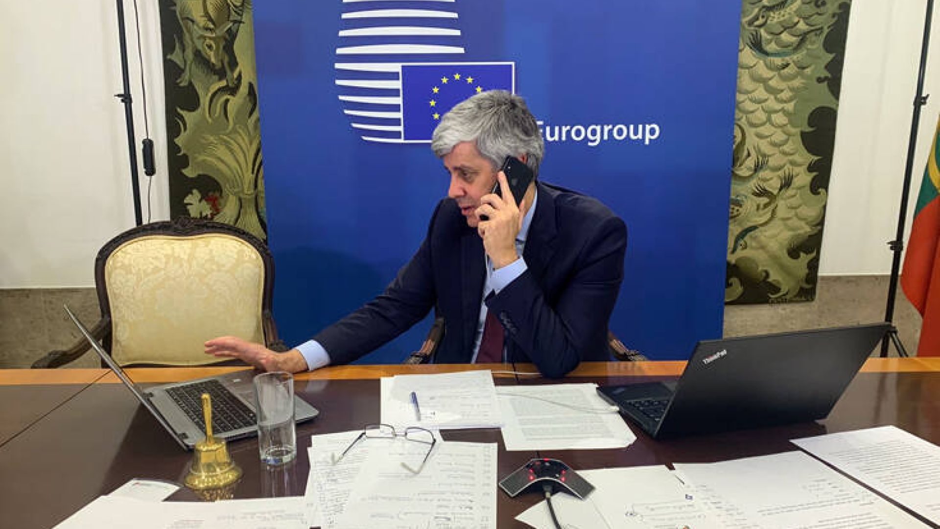 Διεκόπη μετά τις ολονύχτιες εντατικές συνομιλίες το Eurogroup, στο οποίο οι υπουργοί Οικονομικών της Ευρωζώνης συζητούσαν μέτρα και μία «ευρωπαϊκή απάντηση» για την αντιμετώπιση της πανδημίας του κορονοϊού.