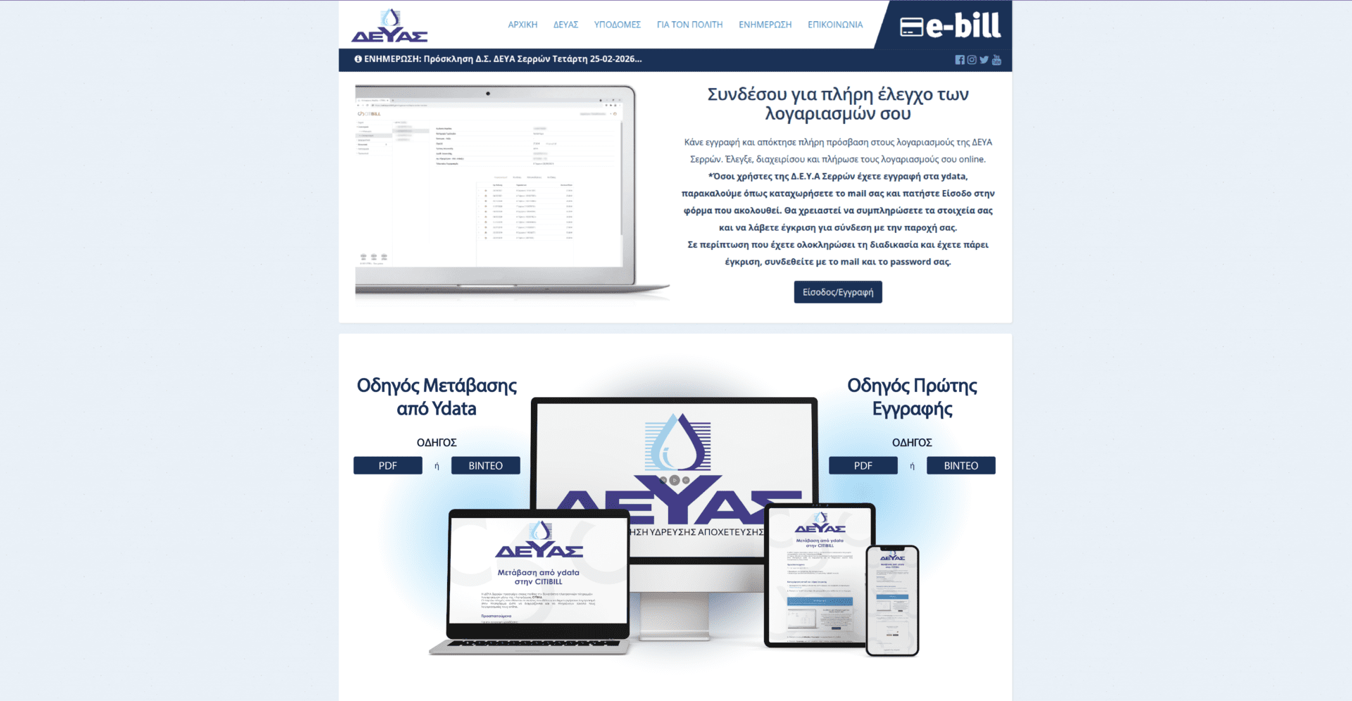 Νέο σύστημα ηλεκτρονικών πληρωμών λογαριασμών μέσω της πλατφόρμας CITIBILL από τη ΔΕΥΑ Σερρών