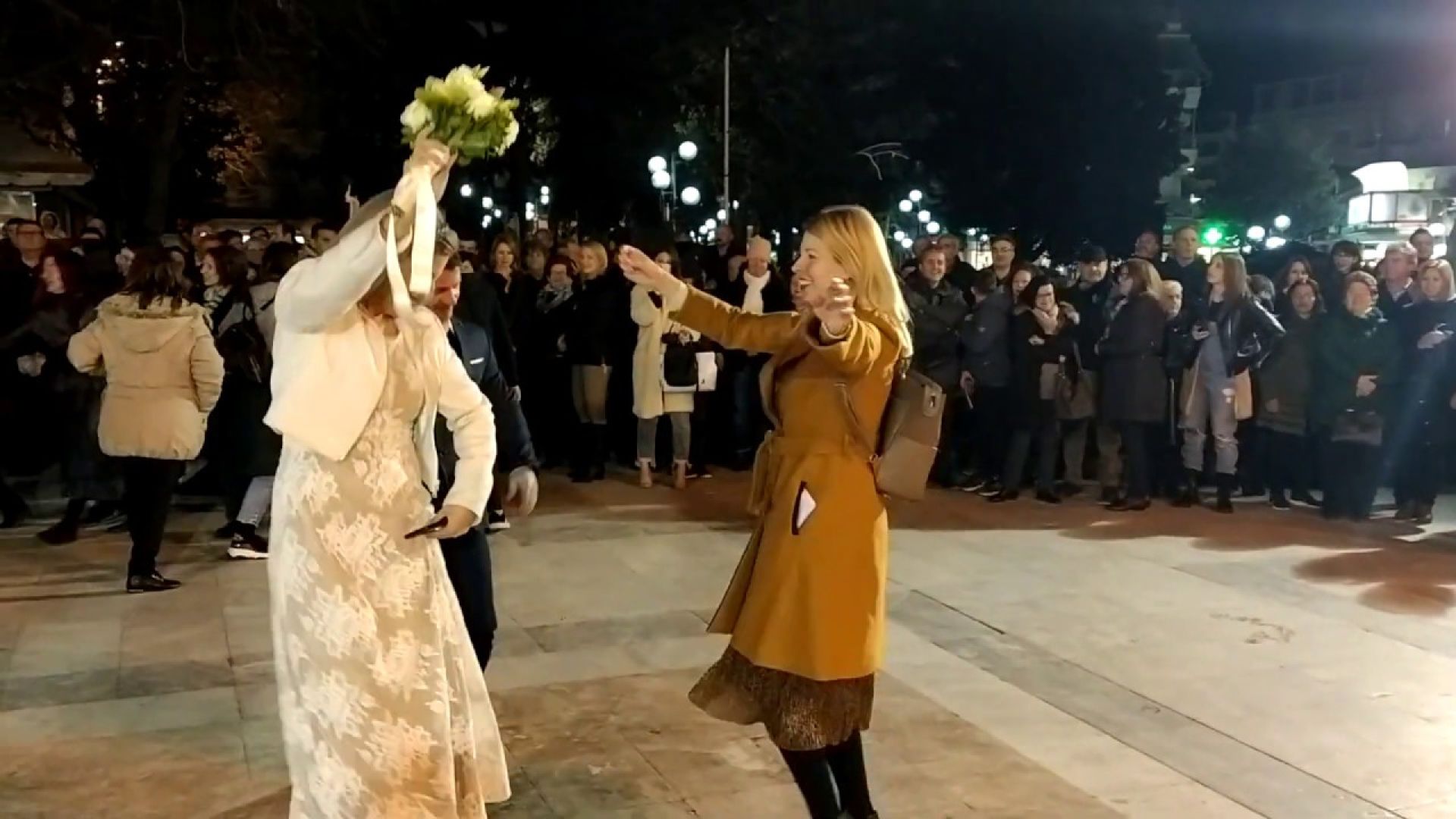Μετά το δημαρχείο, όπου τέλεσαν το γάμο τους, το νεόνυμφο ζευγάρι βρήκε «στρωμένο» λαϊκό γλέντι, «προσφορά» της Σερραϊκής «Mascarata» και πιο συγκεκριμένα της ΚΕΔΗΣ, με τα «χάλκινα ηχοχρώματα» και είπε να το εκμεταλλευτεί δεόντως…!