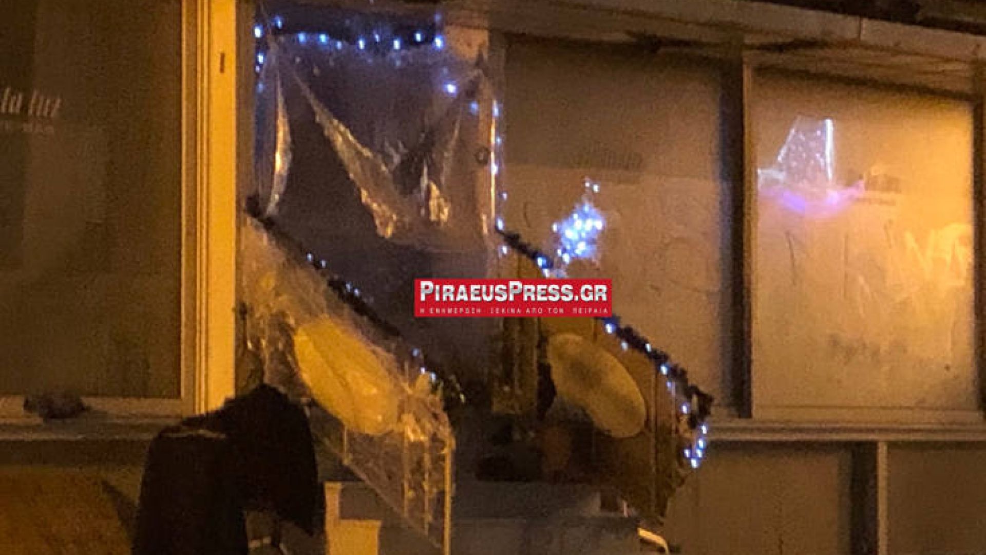 Όπως θα δείτε στο βίντεο και στις φωτογραφίες του piraeuspress.gr, ο άστεγος έχει φροντίσει για το στολισμό του «σπιτιού» του, τοποθετώντας τόσο το παραδοσιακό χριστουγεννιάτικο δεντράκι όσο και τα φωτάκια, τα οποία αναβοσβήνουν όλη τη νύχτα.