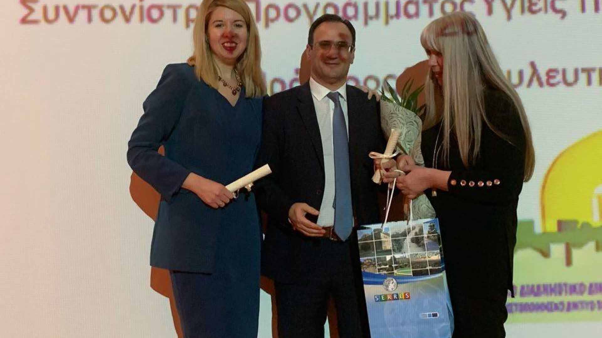 Ο Δήμαρχος Σερρών βραβεύτηκε από την Πρόεδρο της Συμβουλευτικής Επιτροπής του Παγκόσμιου Οργανισμού Υγείας