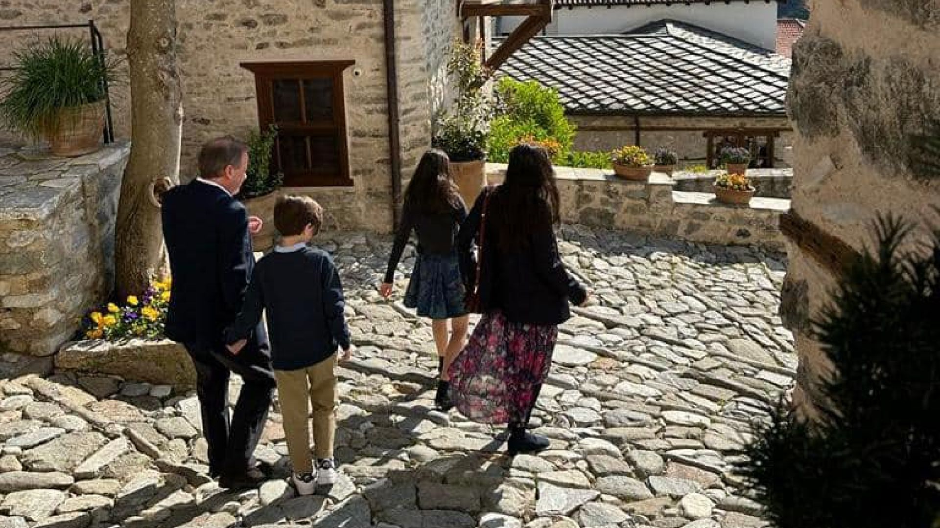 Ο Κώστας Καραμανλής με τη σύζυγο και τα παιδιά του στην Ιερά Μονή Τιμίου Προδρόμου
