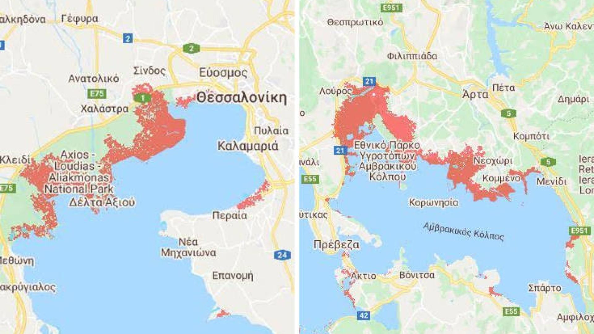 Οι περιοχές της Ελλάδας που κινδυνεύουν να βρεθούν κάτω από το νερό μέχρι το 2050