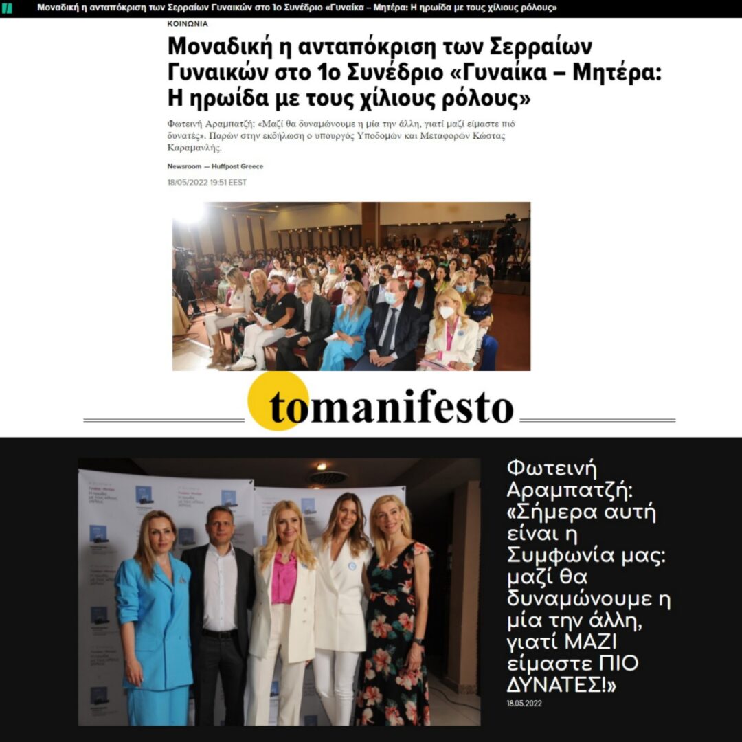 Η ενθουσιώδης συμμετοχή των γυναικών, οι ομιλίες των διακεκριμένων προσκεκλημένων ομιλητών και η δυναμική παρουσία της Φωτεινής Αραμπατζή συγκέντρωσαν το ενδιαφέρον και πανελλαδικών ιστοτόπων, οι οποίοι πρόβαλαν το Συνέδριο μέσα από ιστοσελίδες όπως οι: